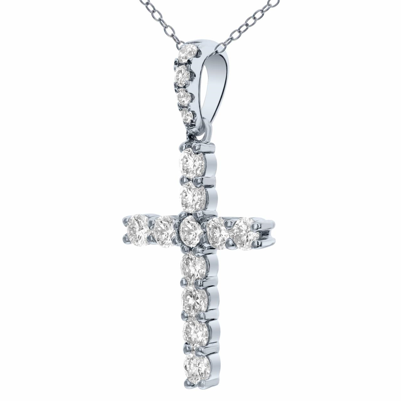 A diamond cross pendant with diamond bail, set in 18K white gold.