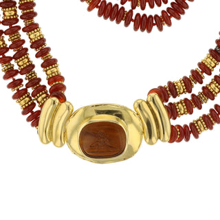 Estate Elizabeth Gage 18K Gold Carnelian Bead Necklace with Intaglio Clasp