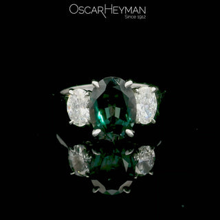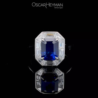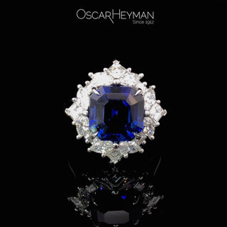 Oscar Heyman Platinum Royal Blue Ceylon Sapphire Ring with Calibre-Cut Diamonds