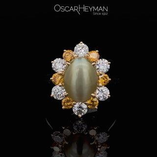 Oscar Heyman Platinum Emerald-Cut Yellow Sapphire Cocktail Ring with Diamonds