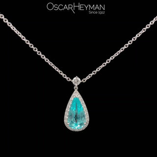 Oscar Heyman Platinum Paraiba Tourmaline Drop Pendant Necklace with Diamonds