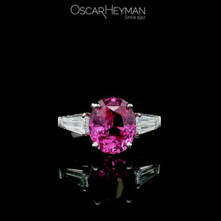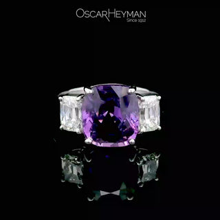 Oscar Heyman Platinum Purple Sapphire Cushion Three-Stone Ring with Diamonds