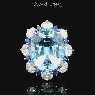 Oscar Heyman Platinum Aquamarine Cocktail Ring with Sapphires and Diamonds