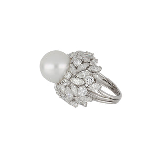 Vintage/Estate White Platinum South Sea Pearl Cocktail Ring with Diamonds