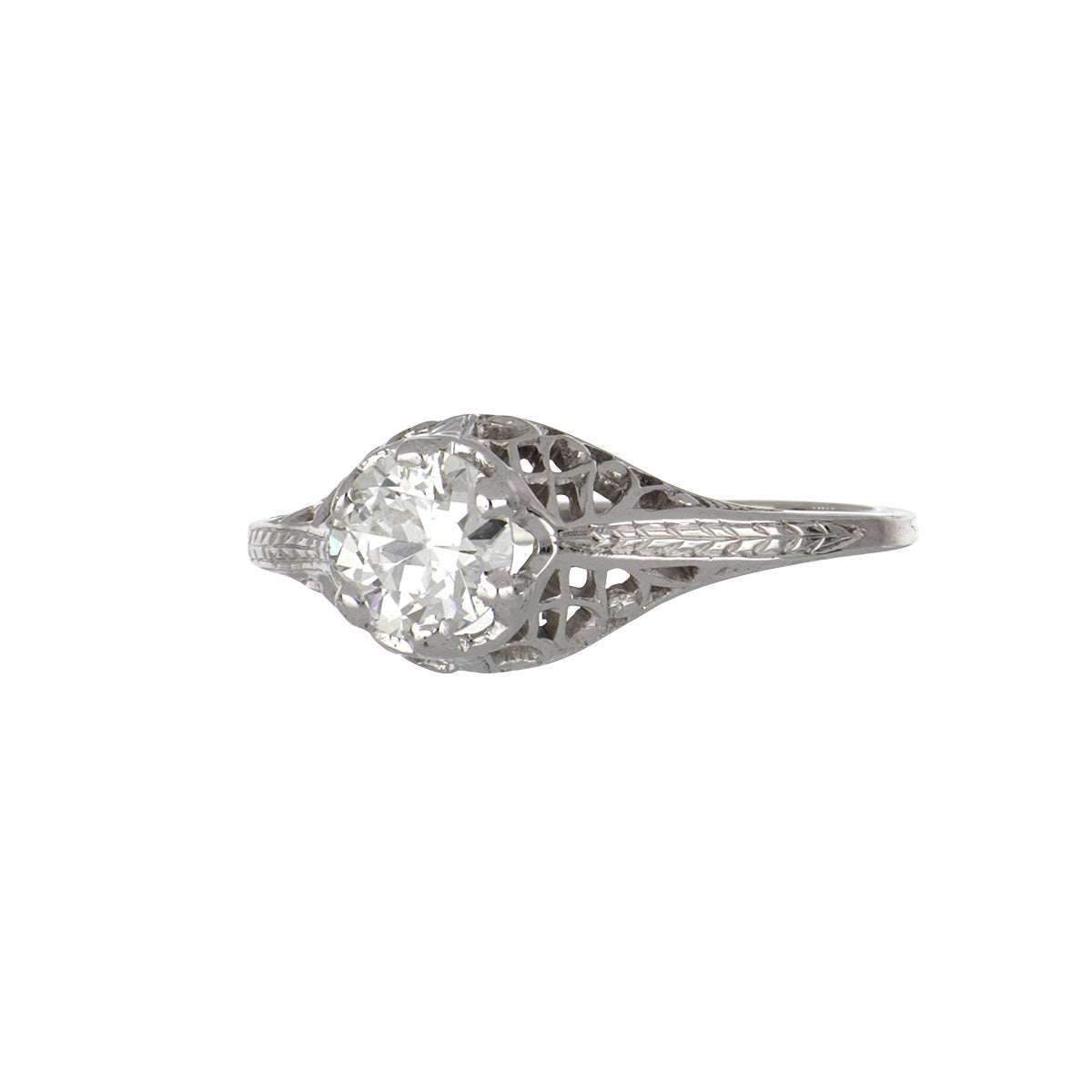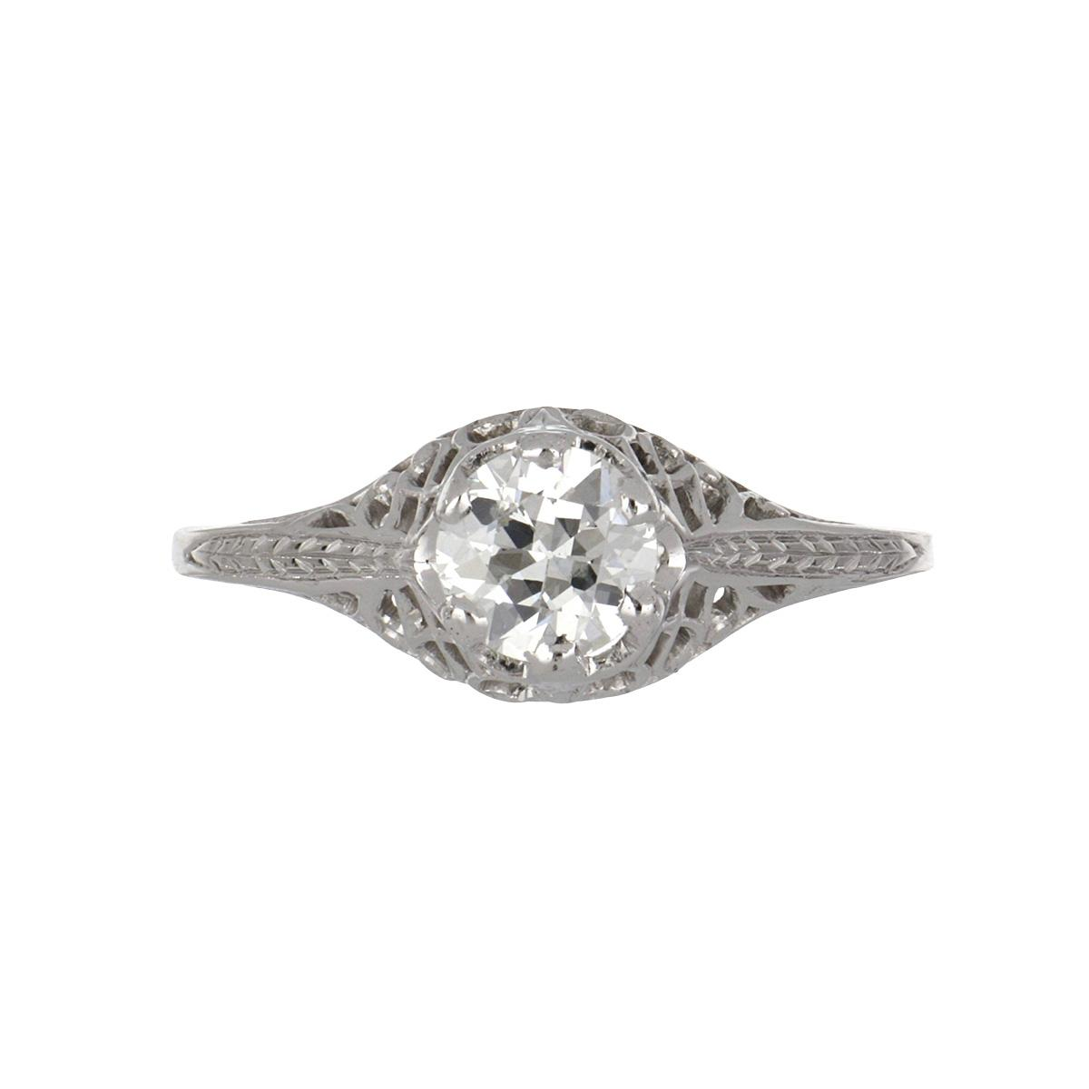 An estate Belais Art-Deco old European-cut diamond ring in 18k white gold. Circa 1920.