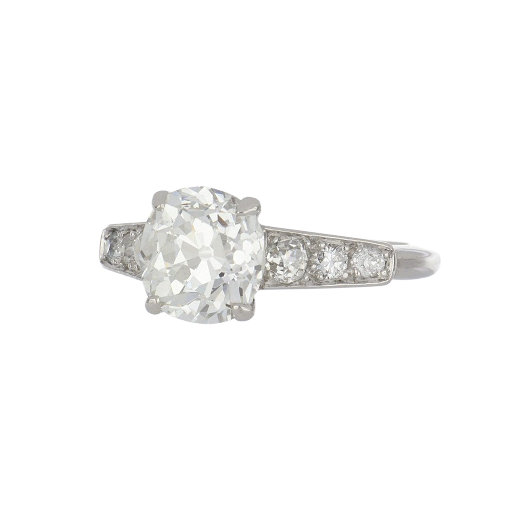 Art Deco Signed GIA 2.26 Carat Old Mine-Cut Diamond Solitaire with Side Stones Engagement Ring