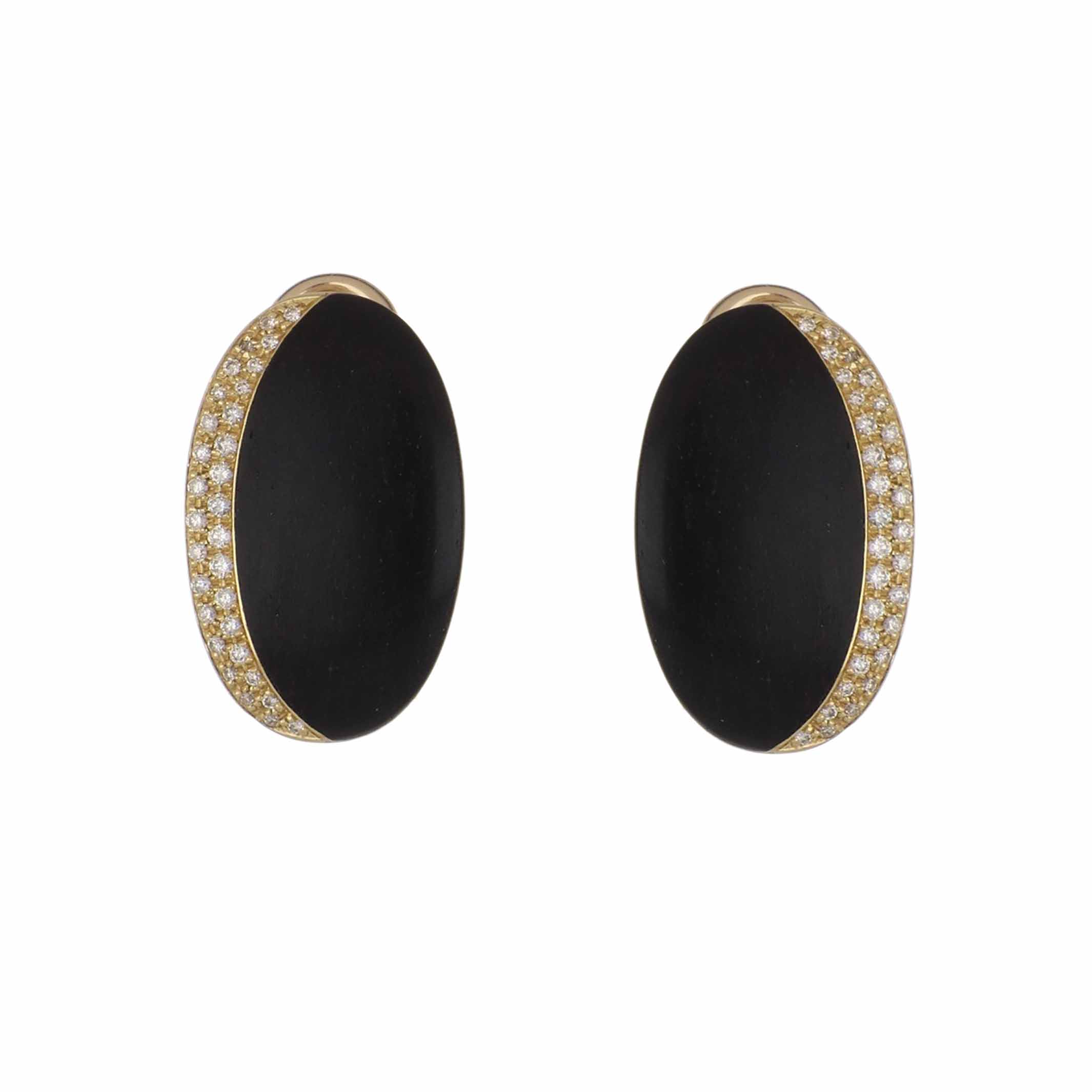 A pair of Antonio Papini gold oval wood earrings with pave diamonds in 18K yellow gold.
