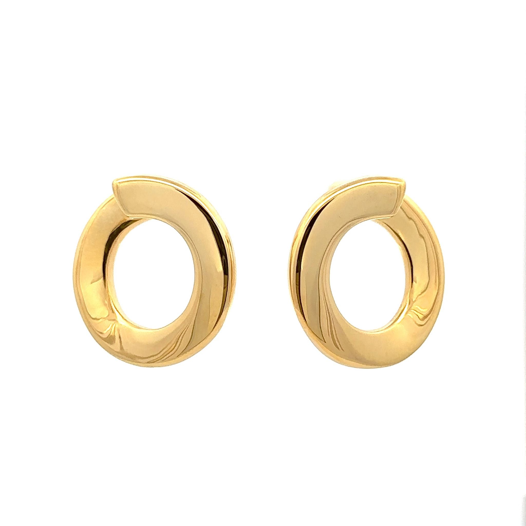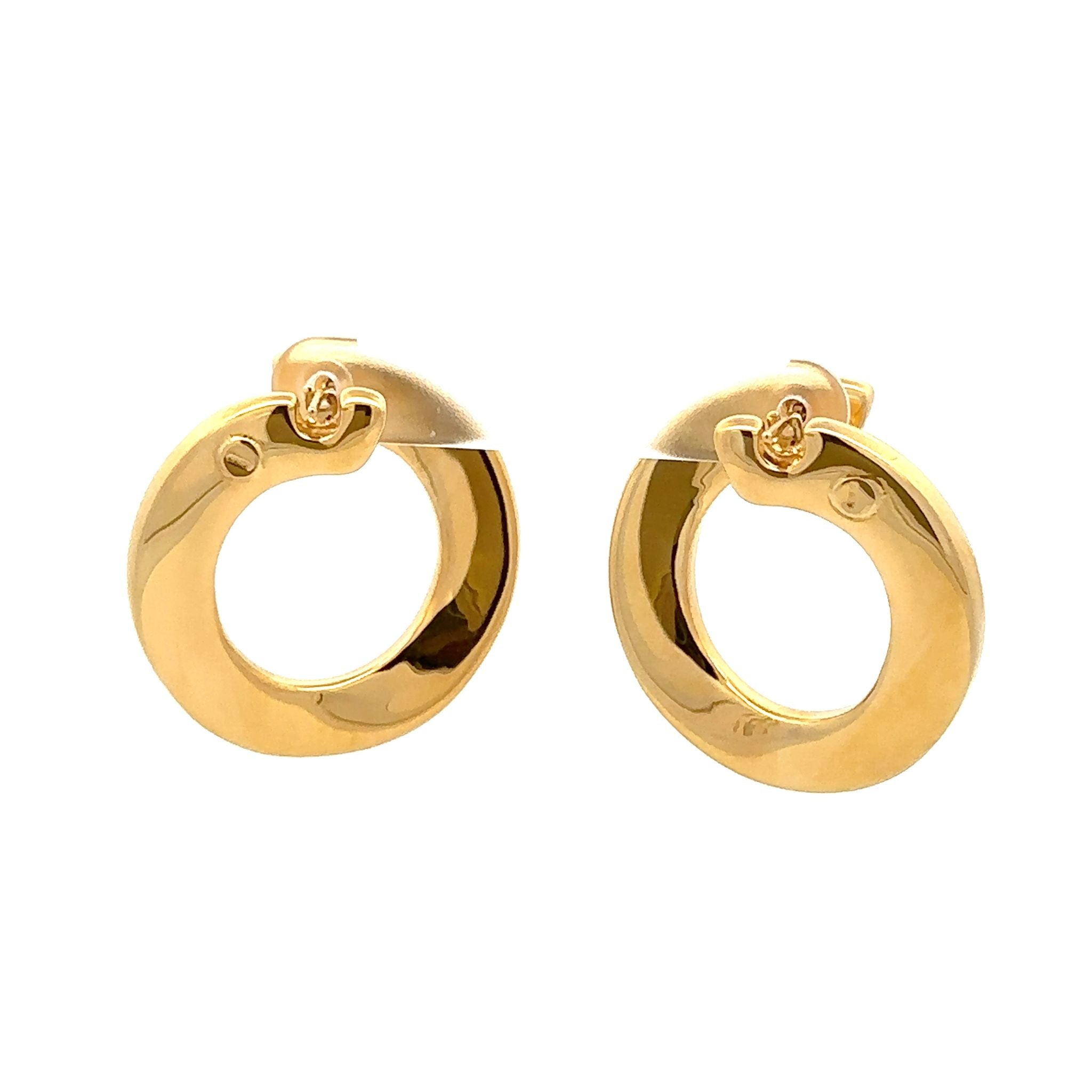 A pair of Antonio Papini swirl design round hoop earrings, set in 18K yellow gold.