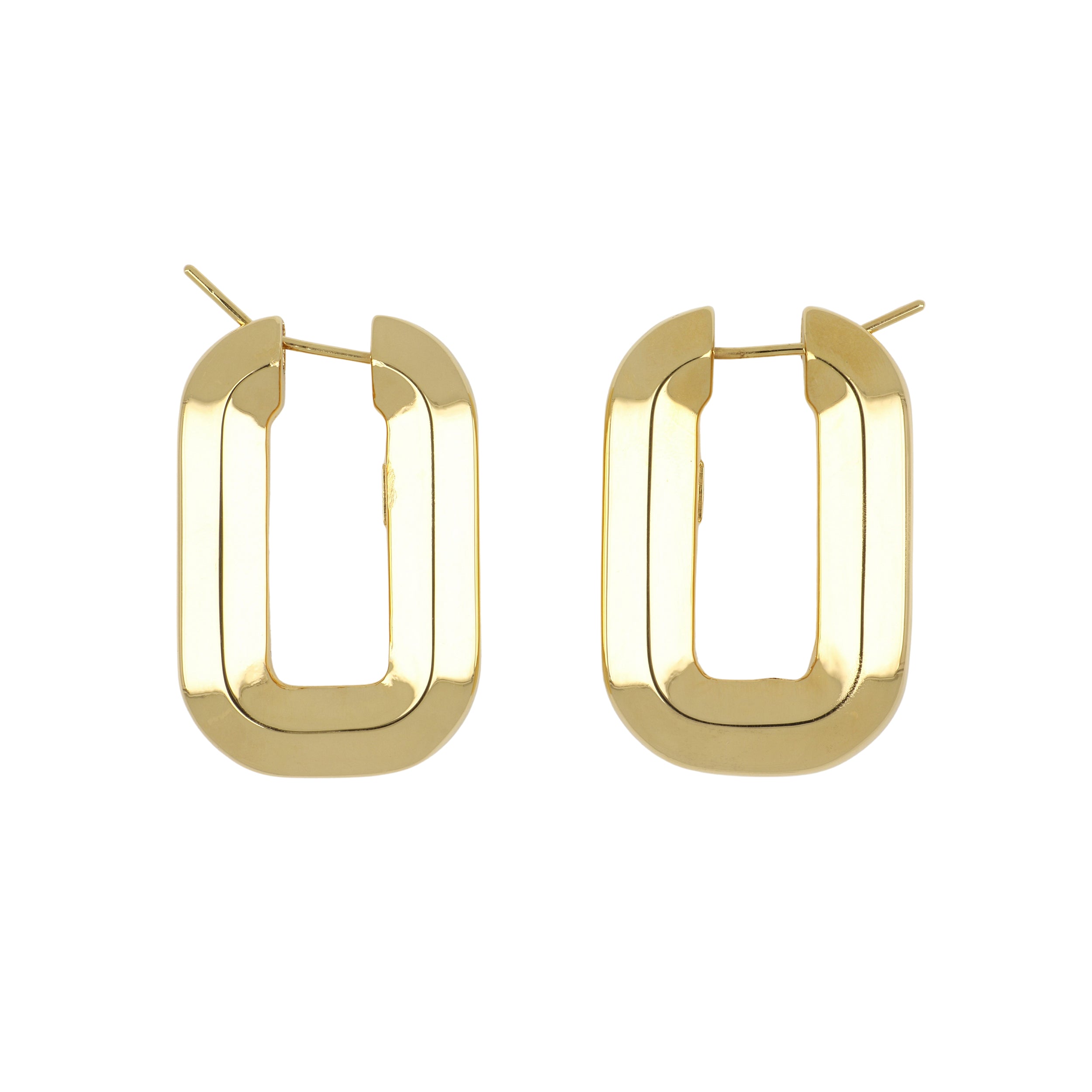A pair of Antonio Papini squared off design hoop earrings, set in 18K yellow gold.