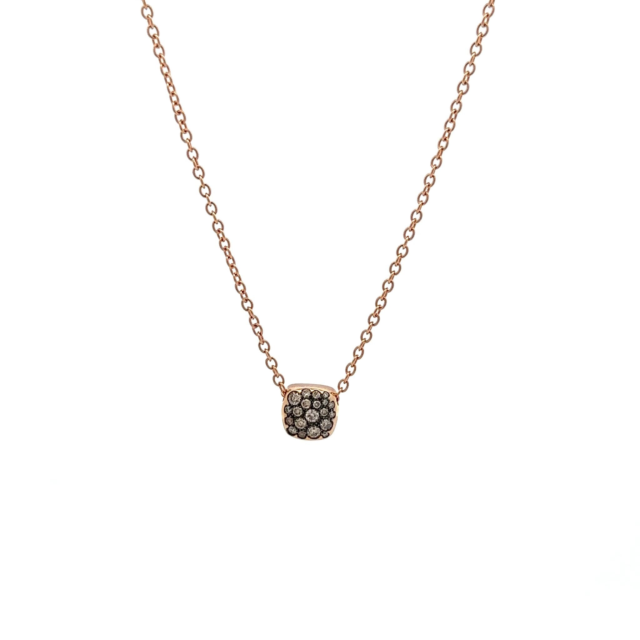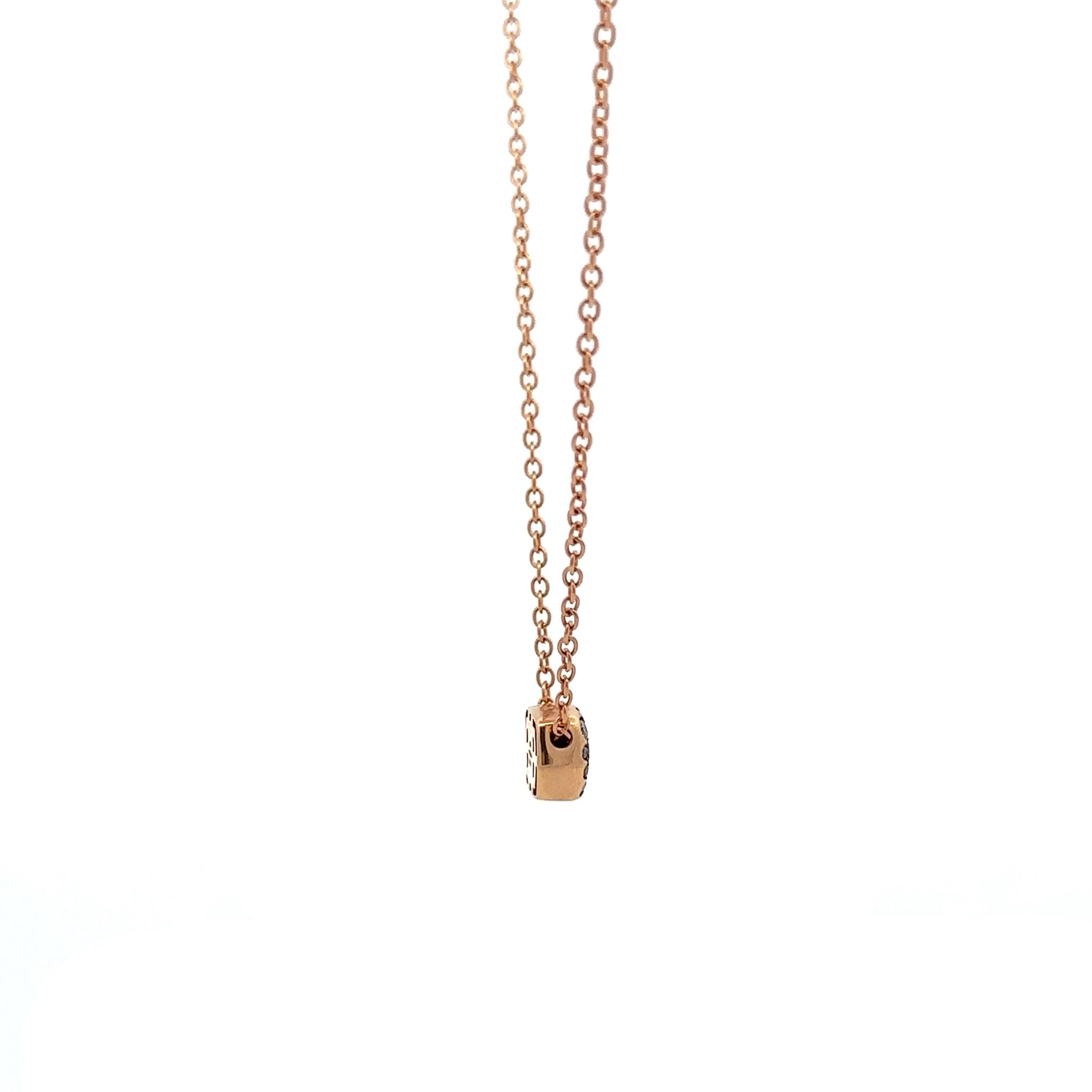 An Antonio Papini pendant necklace featuring a brown diamond pave fixed pendant on a cable chain in 18K rose gold. Made in Italy.