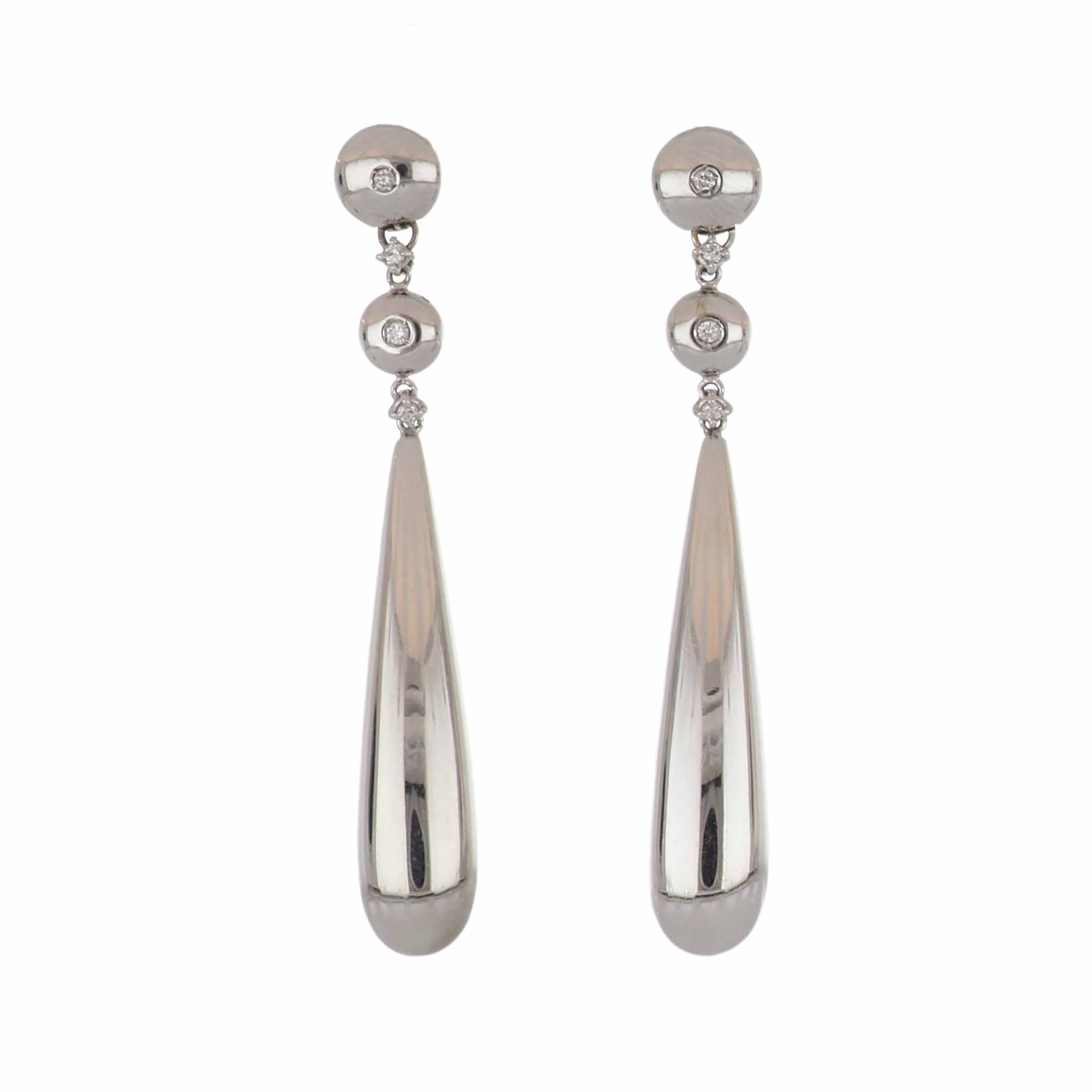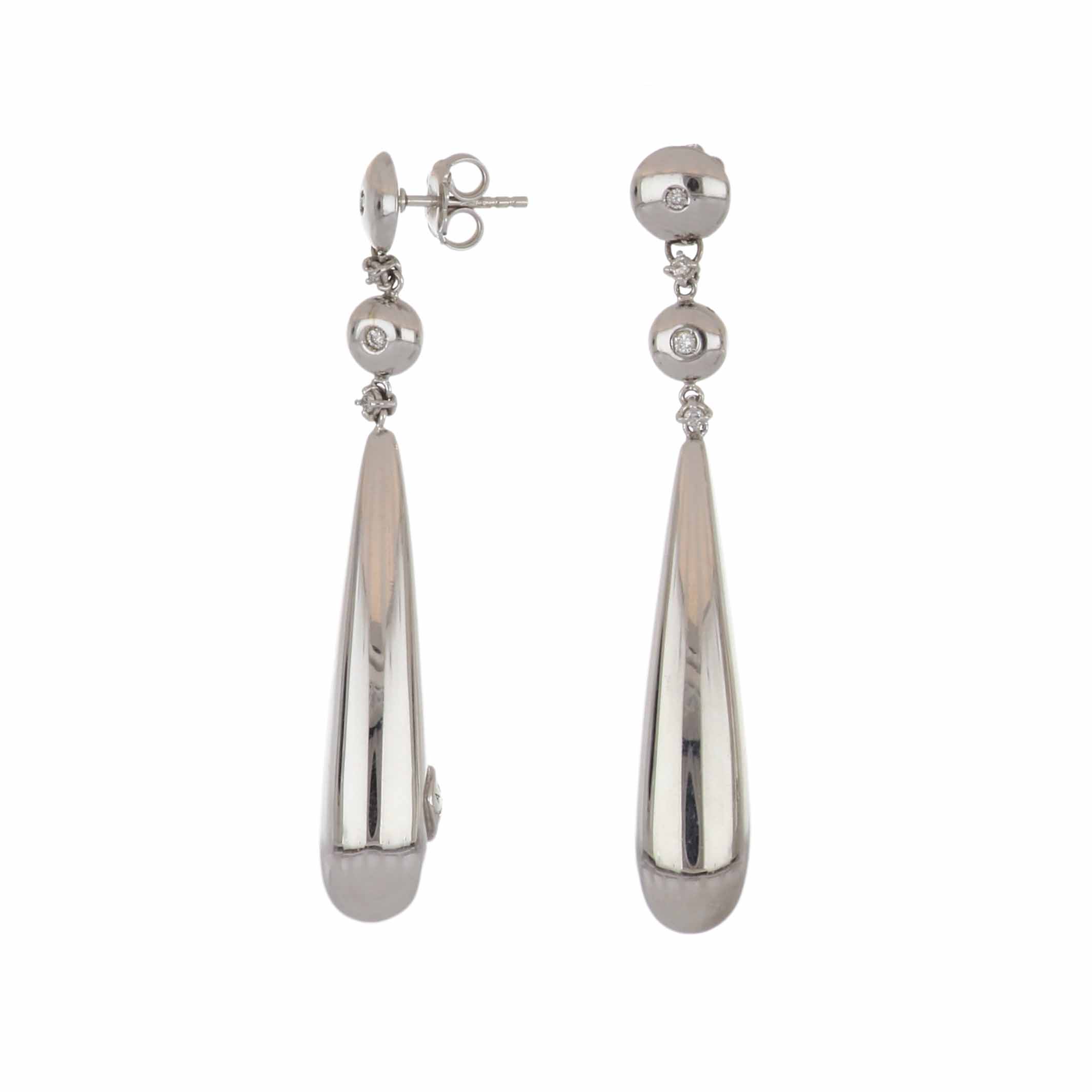A pair of Antonio Papini 18K white gold drop earrings with diamonds.