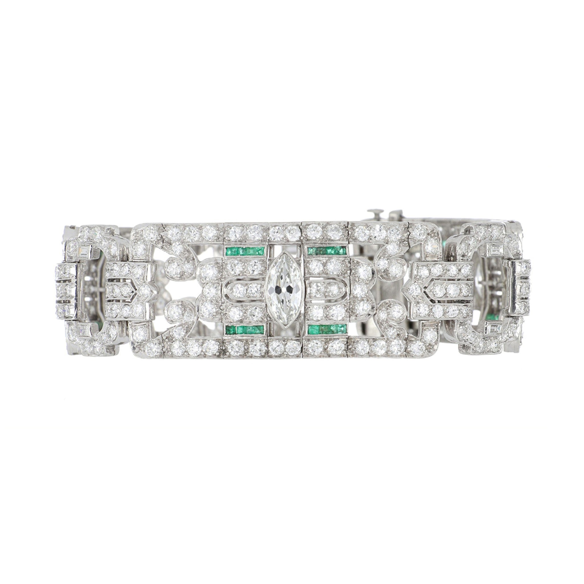 A vintage Art Deco style diamond bracelet with emeralds. Circa 1980.