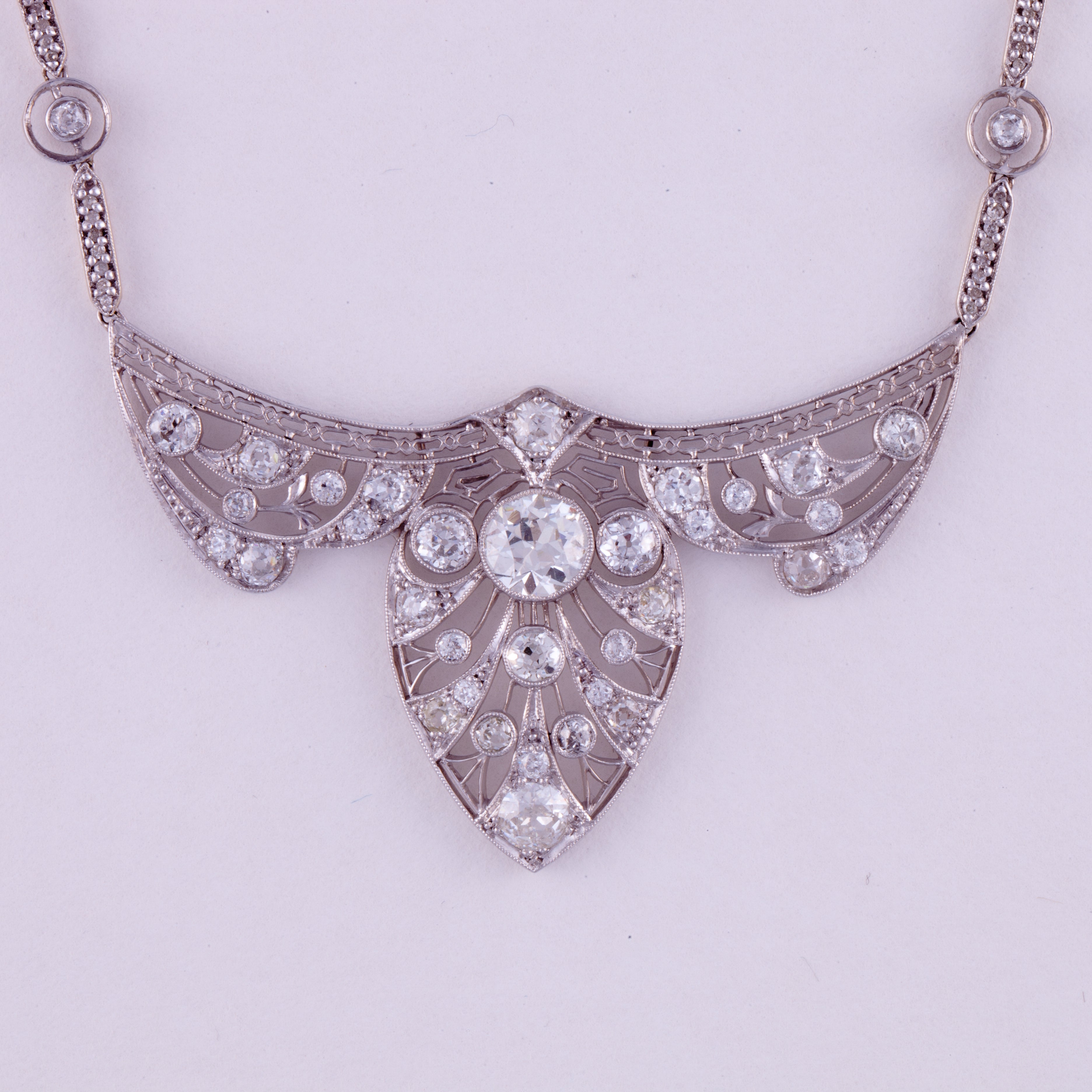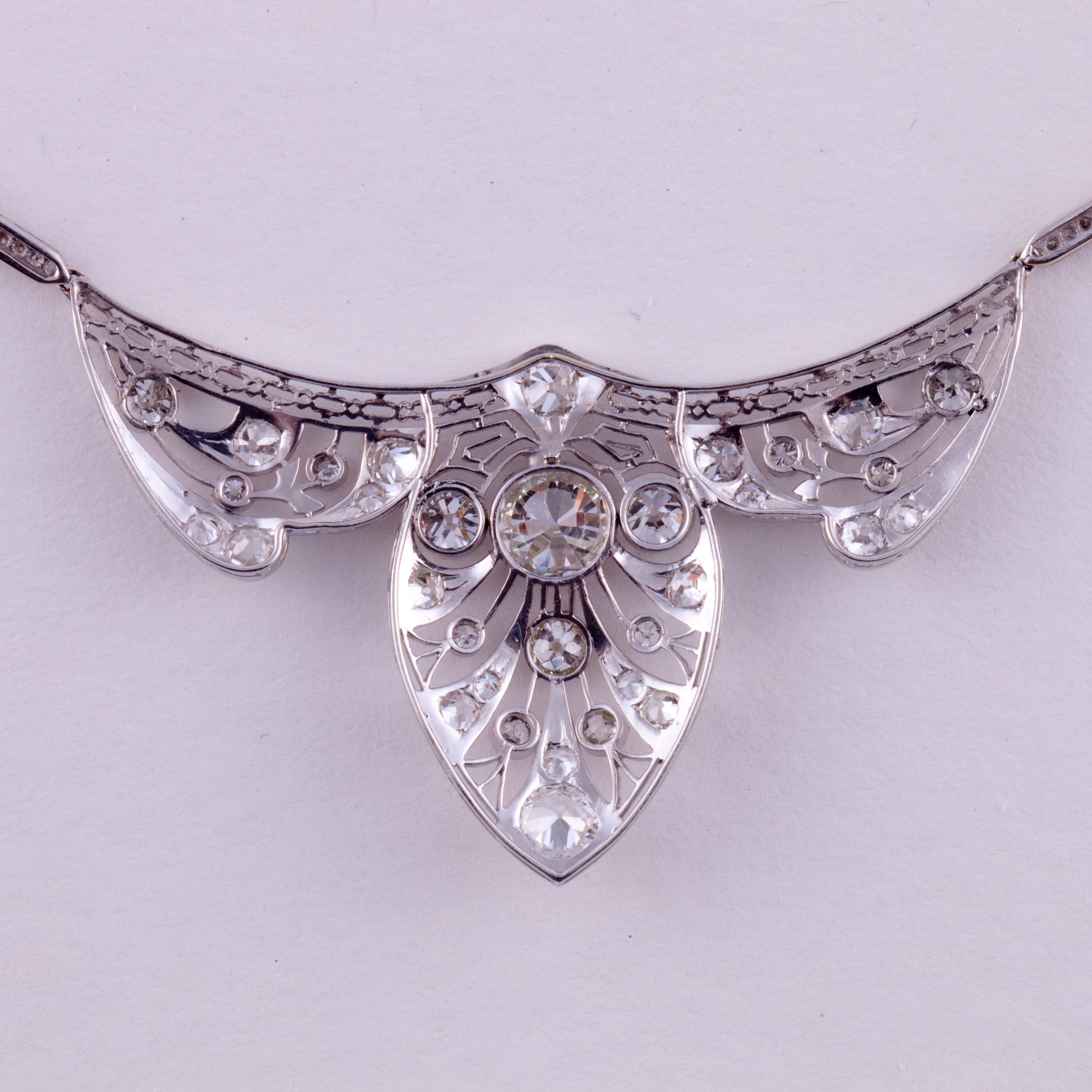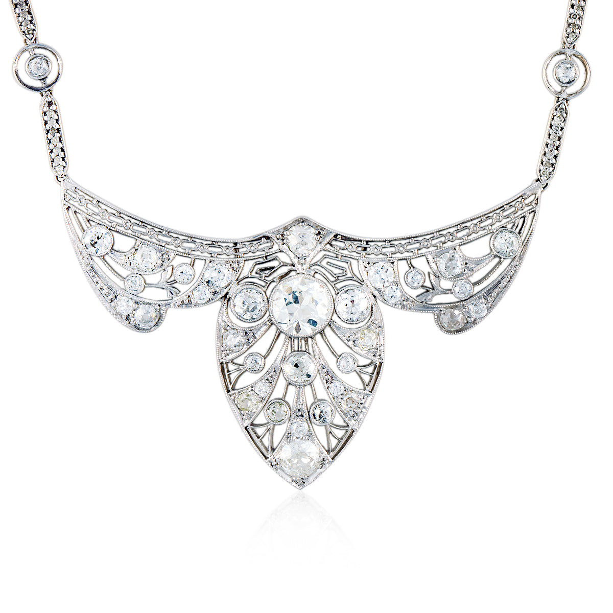 Art Deco Platinum Old European-Cut Diamond Plaque Bib Necklace