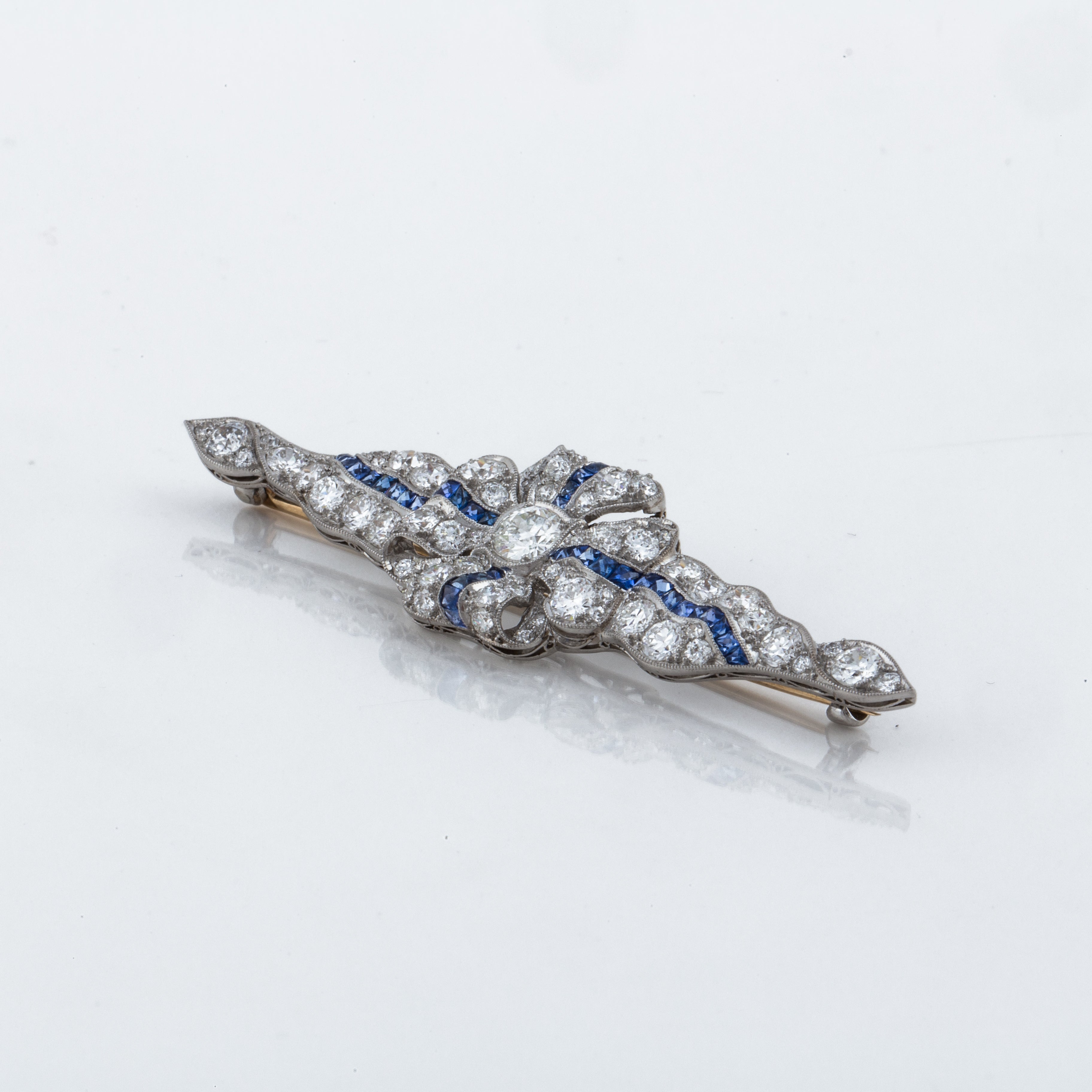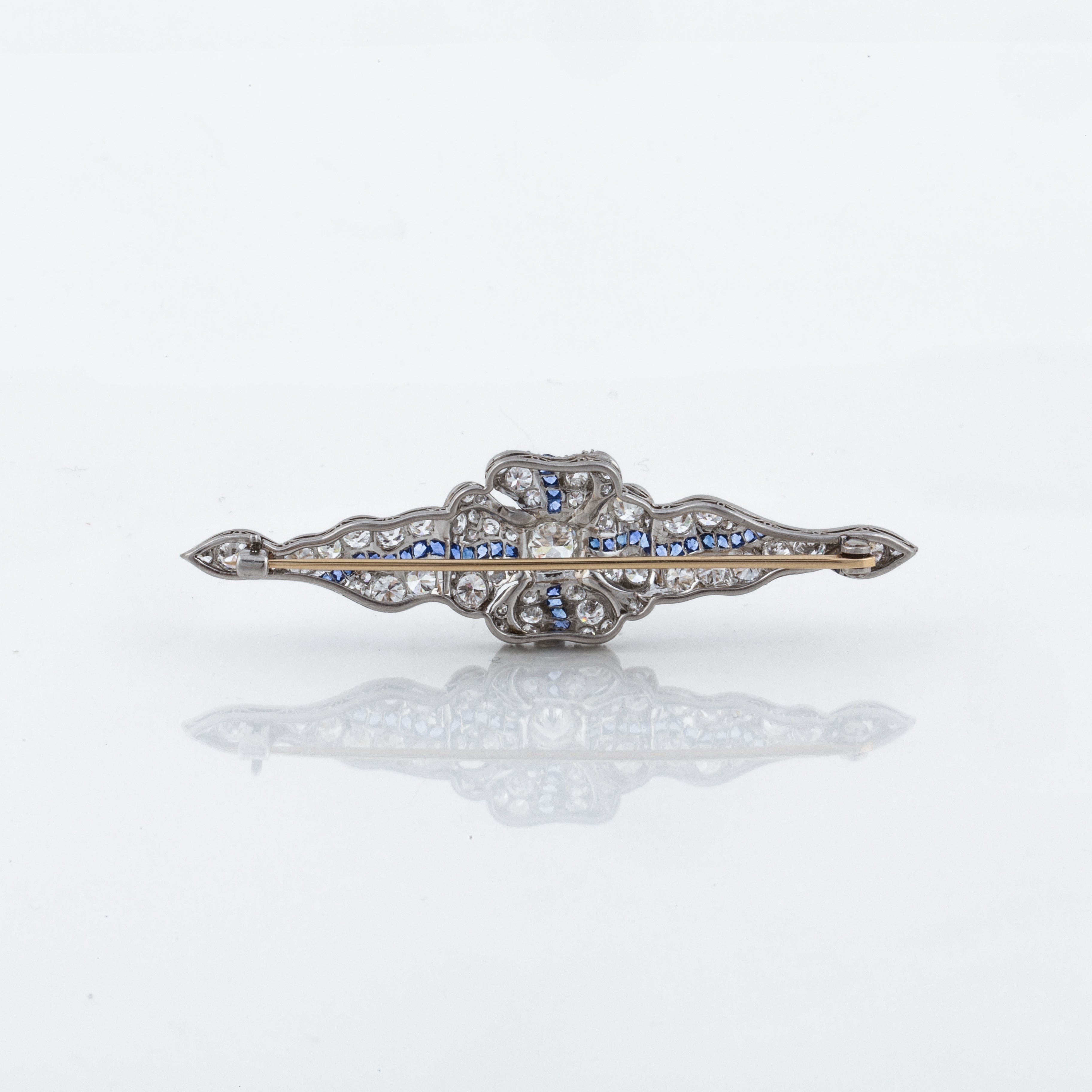 Art Deco Two-Tone Diamond Bar Pin with Sapphires