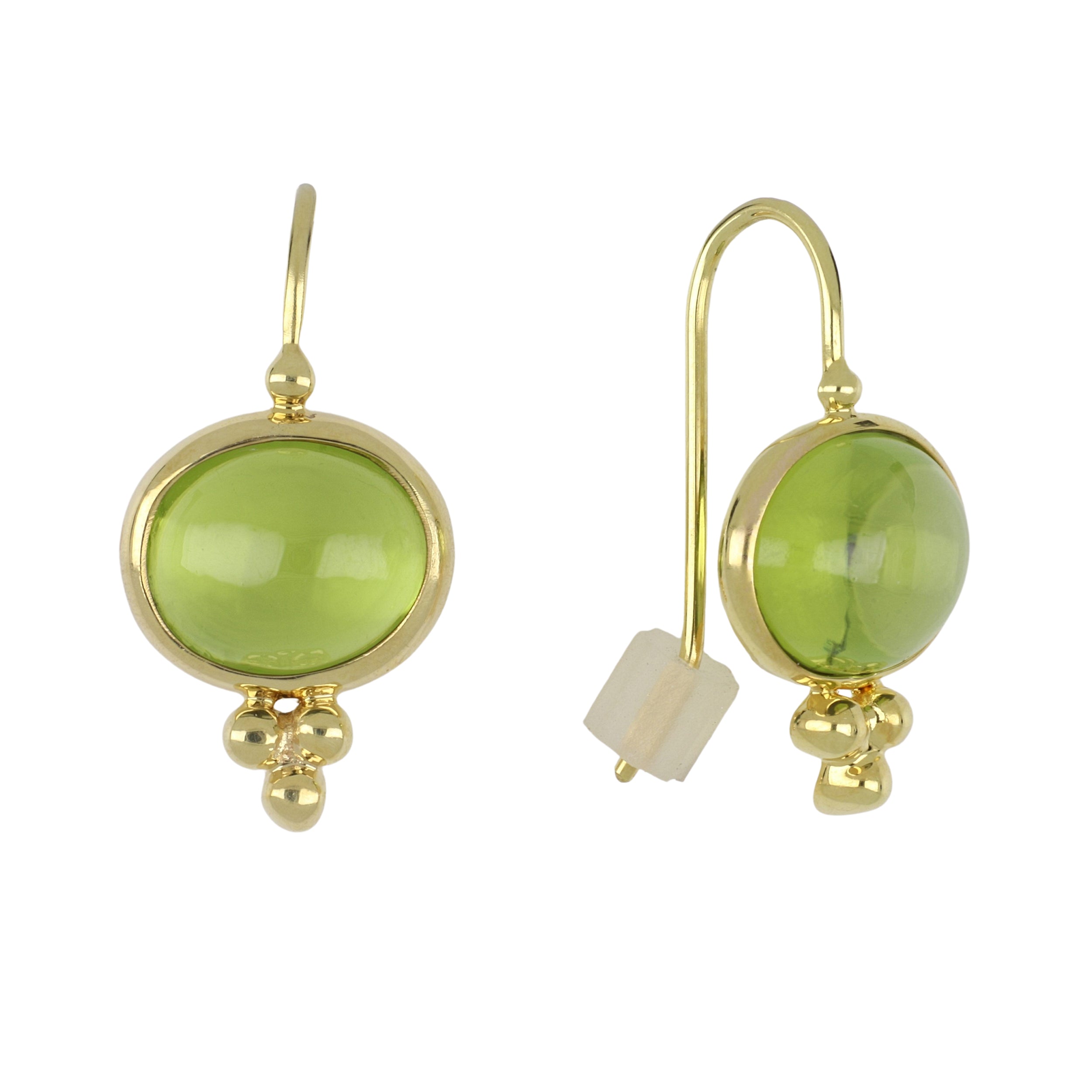 A pair of Mazza "Capri" small peridot drop earrings on wires, set in 14K yellow gold.