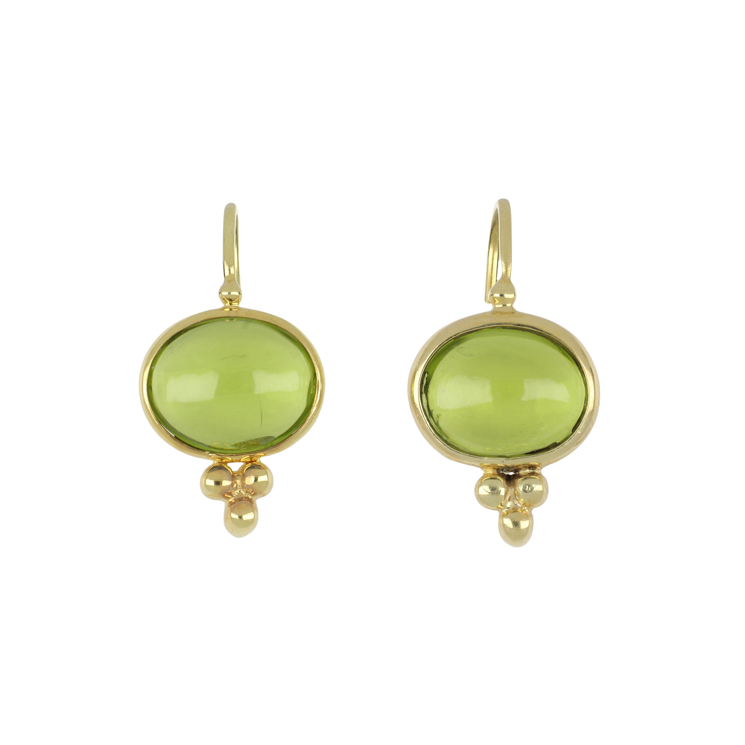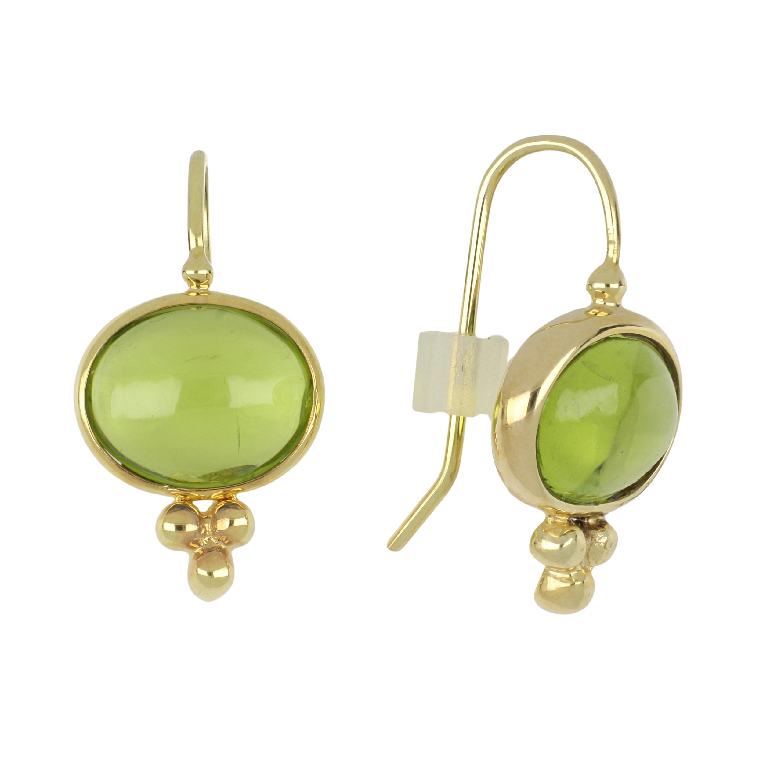 A pair of Mazza "Capri" small peridot drop earrings on wires, set in 14K yellow gold.