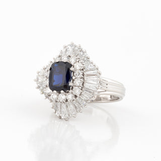 Oscar Heyman Platinum Royal Blue Ceylon Sapphire Ring with Calibre-Cut Diamonds