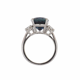 Oscar Heyman Platinum Purple Sapphire Cushion Three-Stone Ring with Diamonds