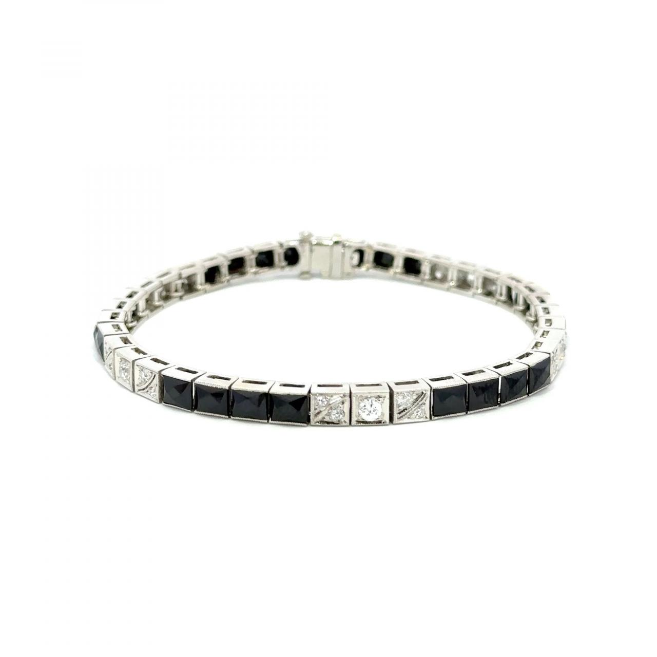 Art Deco Platinum Onyx Line Bracelet with Diamonds