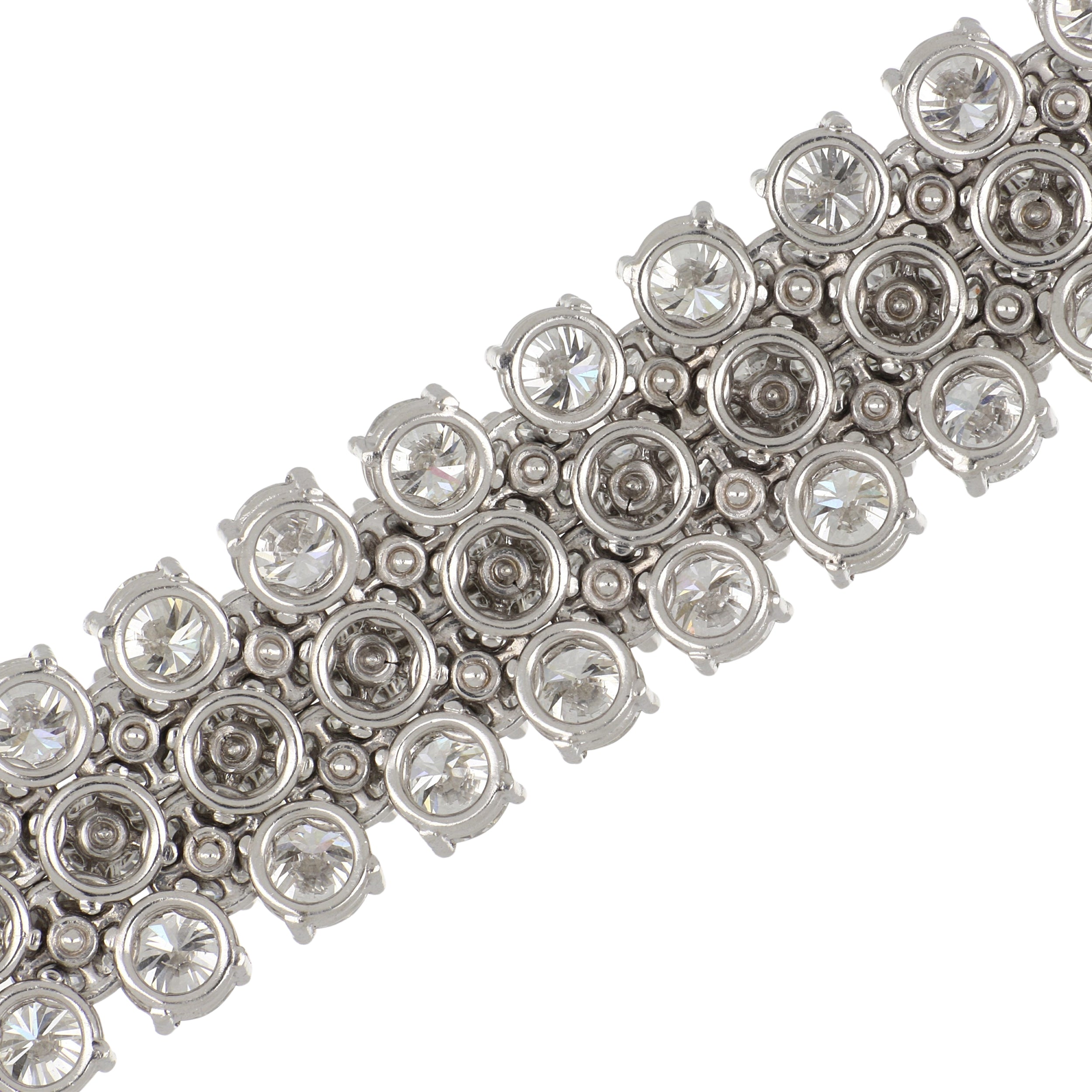 A Mid-Century pyramid round brilliant-cut diamond line bracelet, set in platinum. Circa 1960.