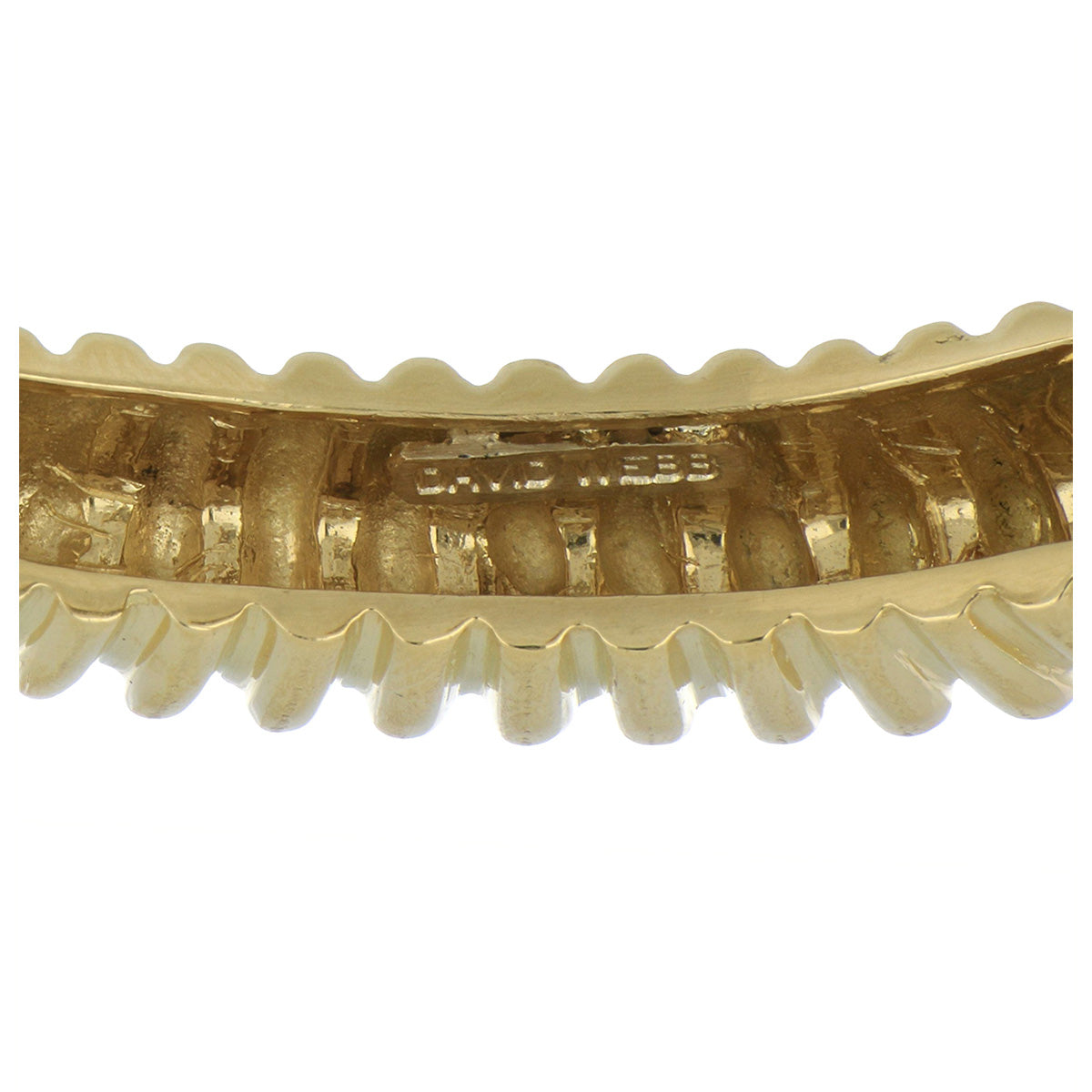 An estate classic David Webb polished 18K yellow gold and platinum ridged cuff bracelet with diamond plaques from the "57th St." Collection. Circa 1980.