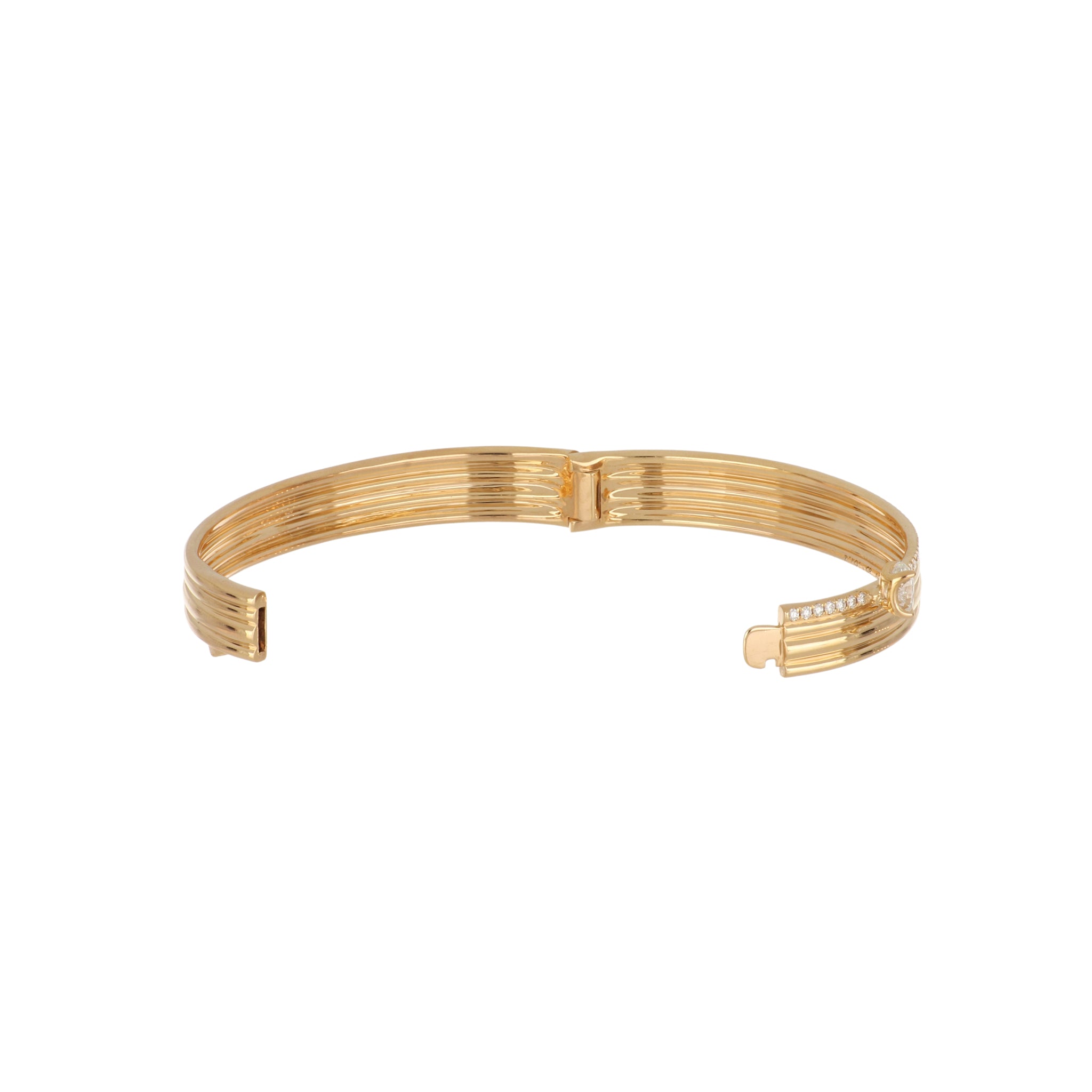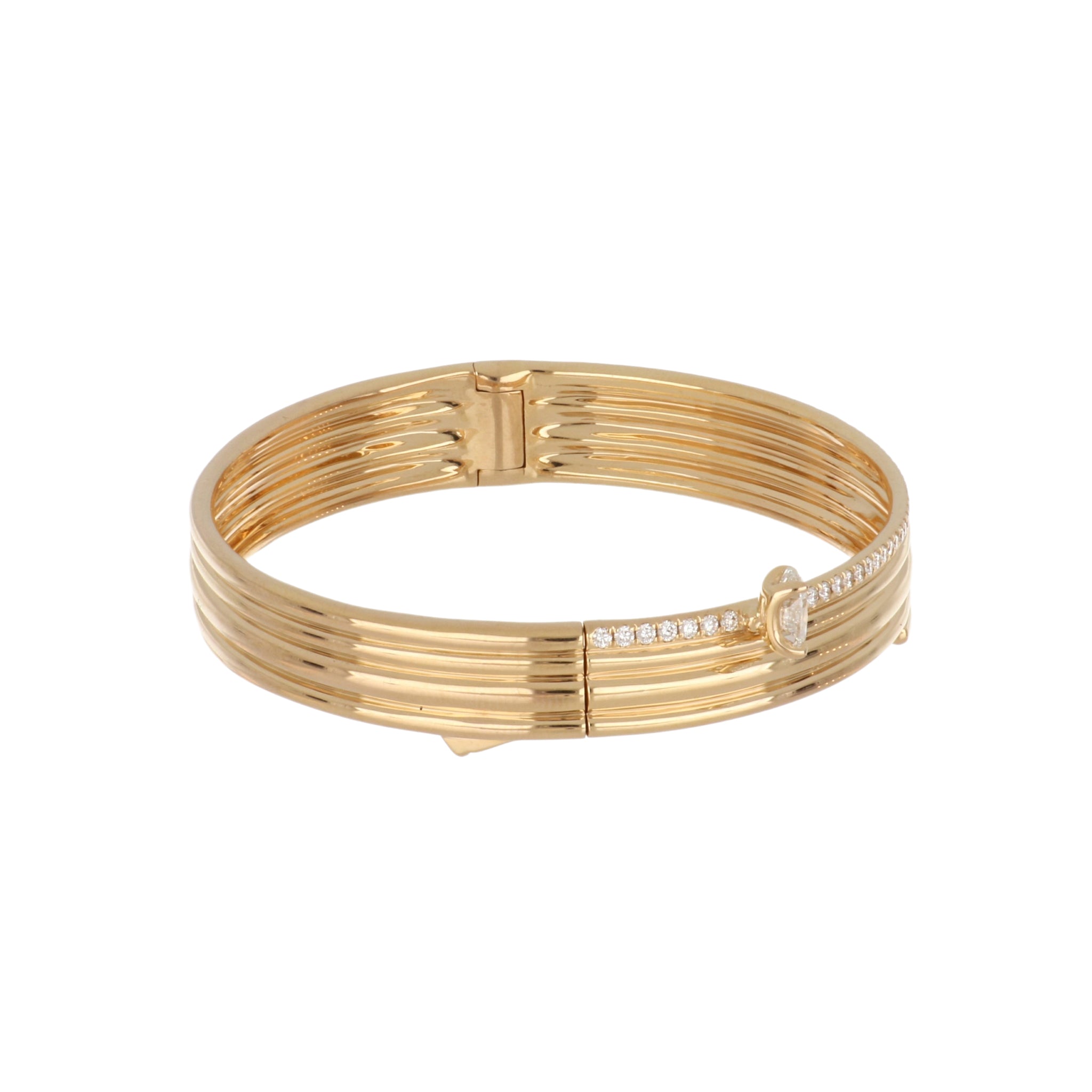 An estate modern Repossi 18k rose gold "Blast" bangle with round brilliant-cut diamonds and a off-set oval brilliant-cut diamond. Circa 2010. Signed: Repossi.