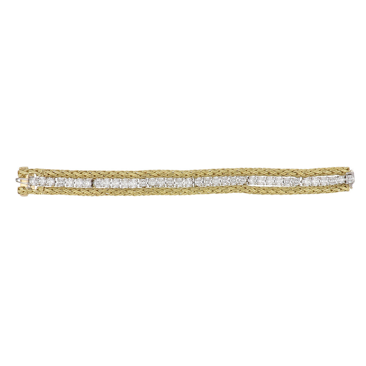 An estate vintage, round brilliant-cut diamond line bracelet set in 14K white gold. Circa 1970.
