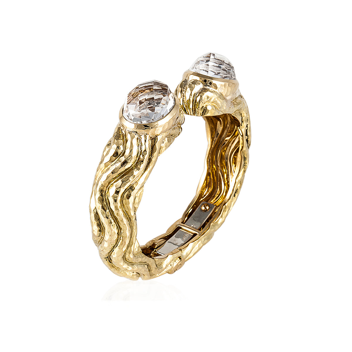 A vintage David Webb rock crystal wave cuff bracelet, in 18K yellow gold. From the Ancient World Collection. Circa 1980.