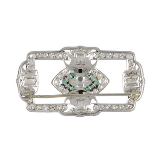 Art Deco Platinum Diamond Clip Brooch with Emeralds