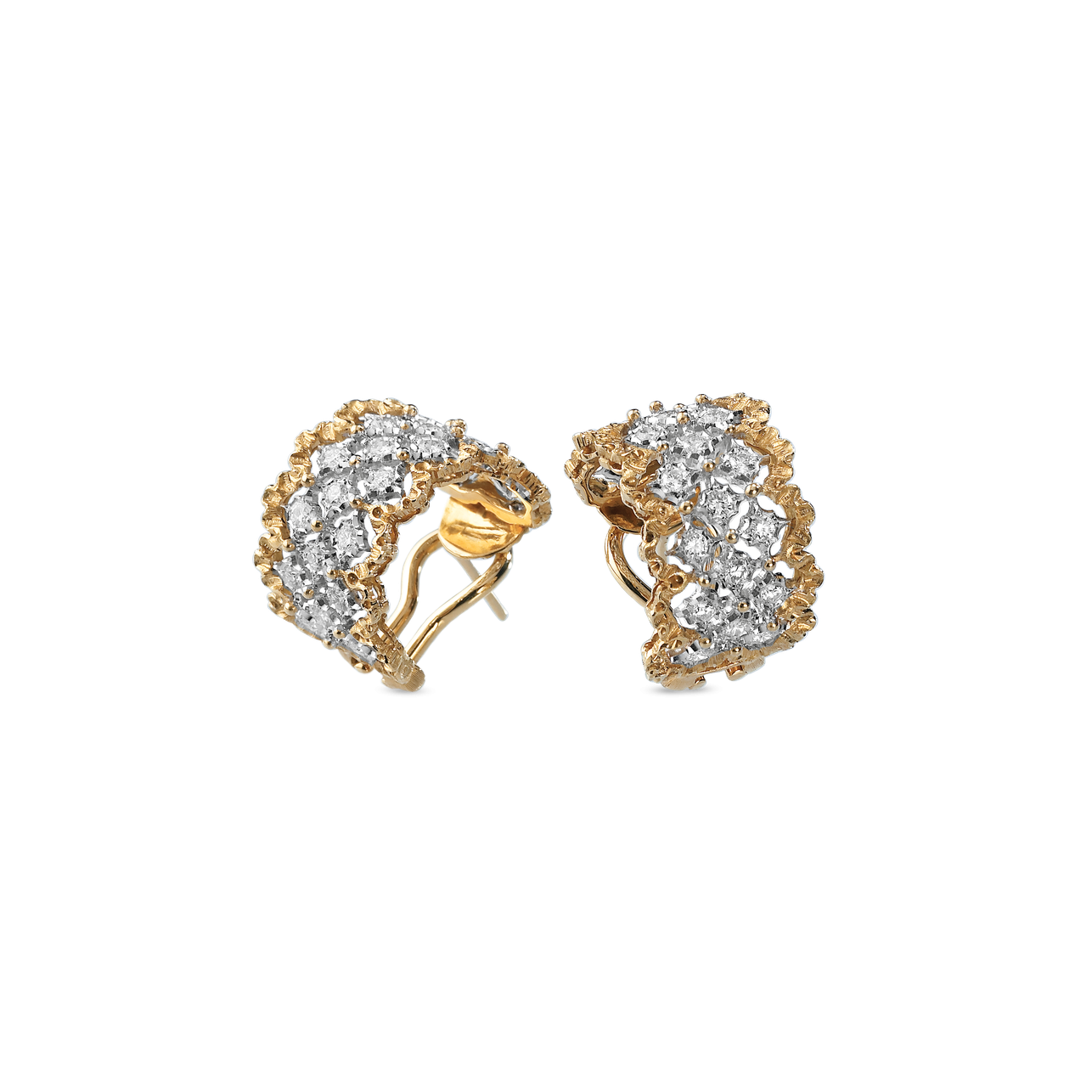 A pair of Buccellati 18K white & yellow gold diamond earrings.