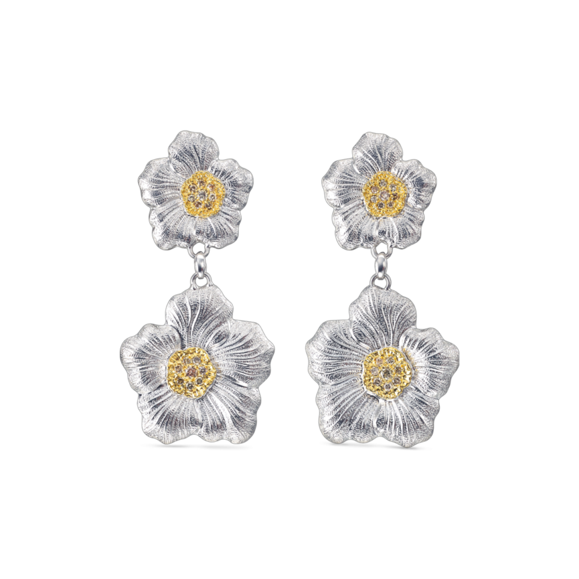 Buccellati Gardenia Sterling Silver and Gold Plated Diamond Drop Earrings