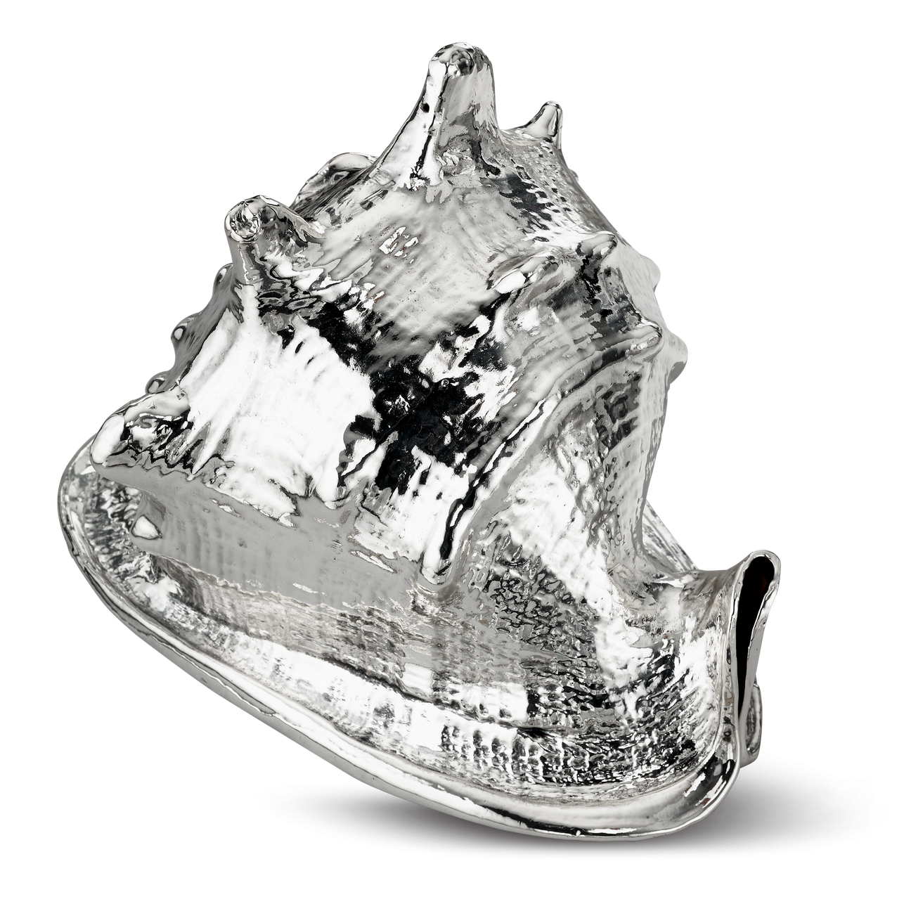A Buccellati Large Cassis Cornuta horned helmut shell coated in silver.