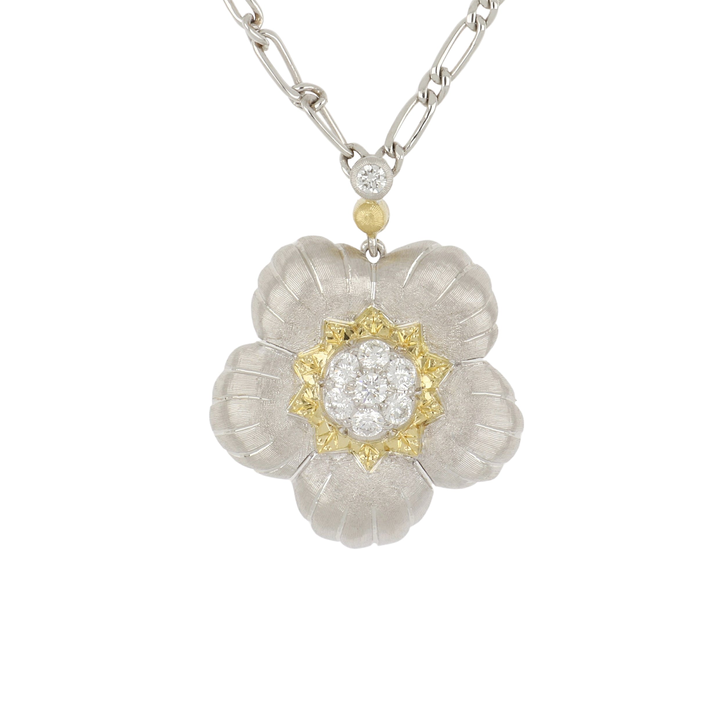 A Buccellati Daphne pendant necklace with round brilliant-cut diamonds, set in 18K yellow and white gold.