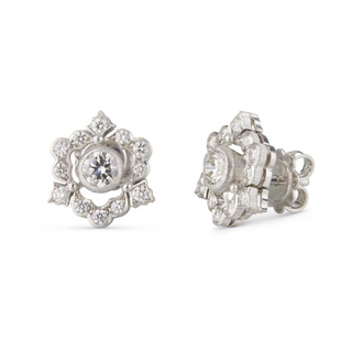 Buccellati Daisy Blackened Sterling Silver and Gold Diamond Button Earrings