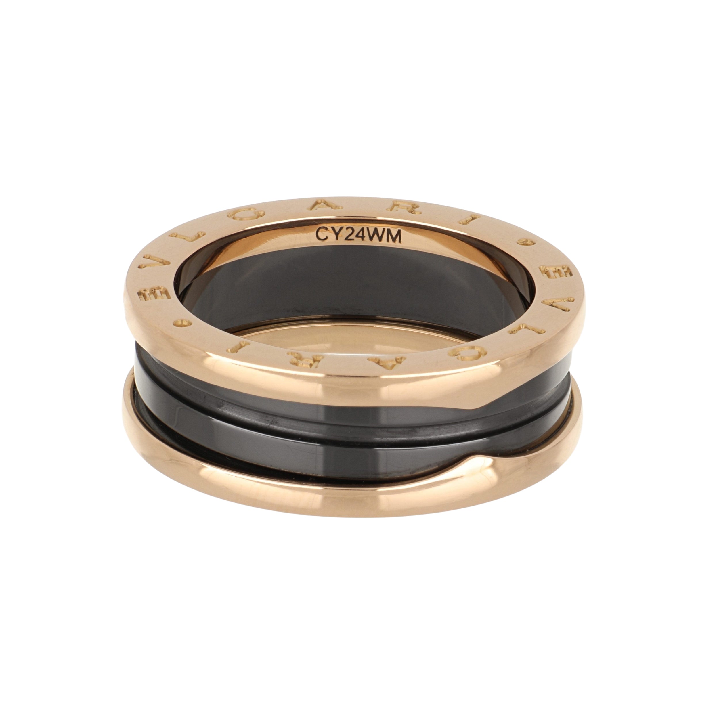 An estate Bulgari B.Zero1 single row black ceramic ring, set in 18K rose gold.
