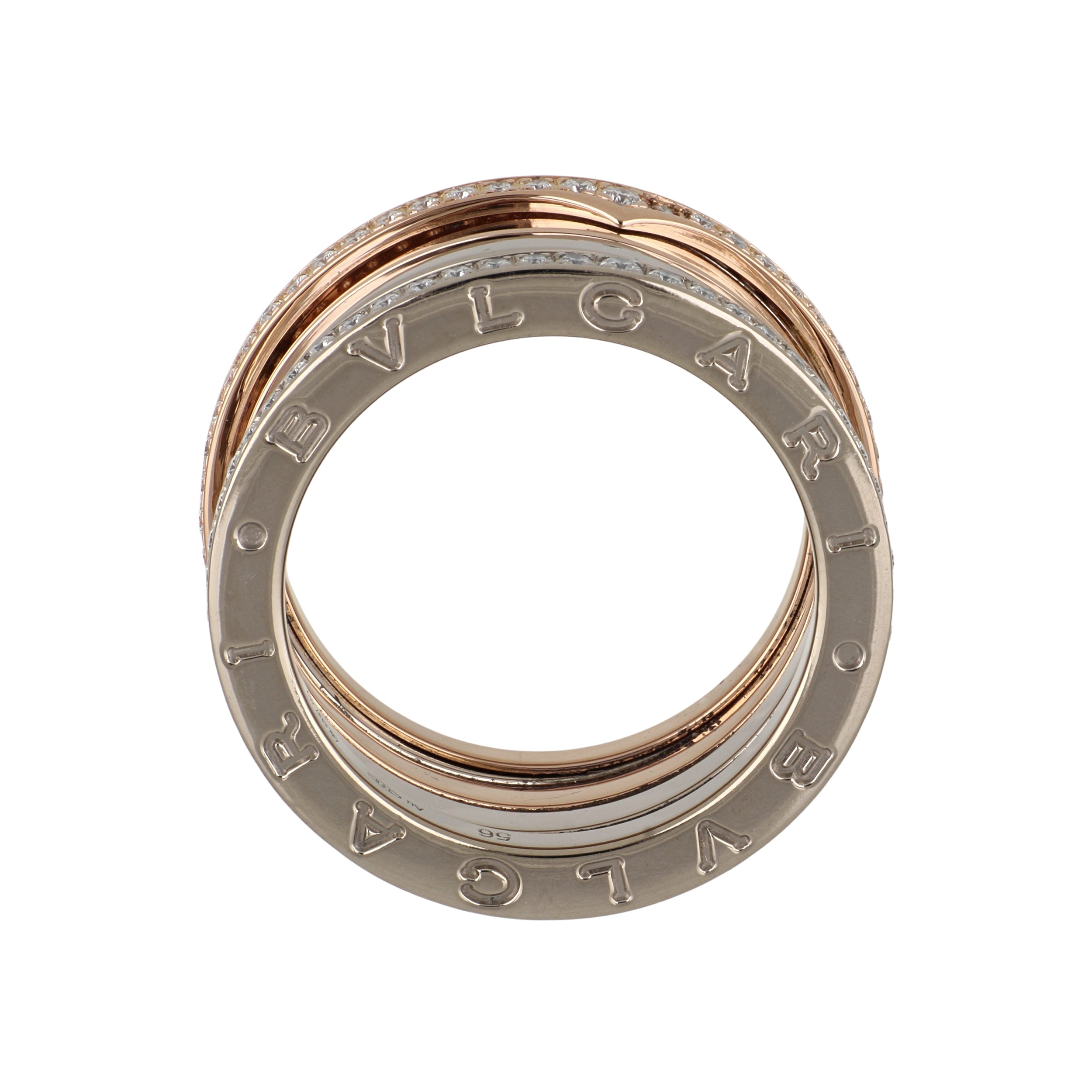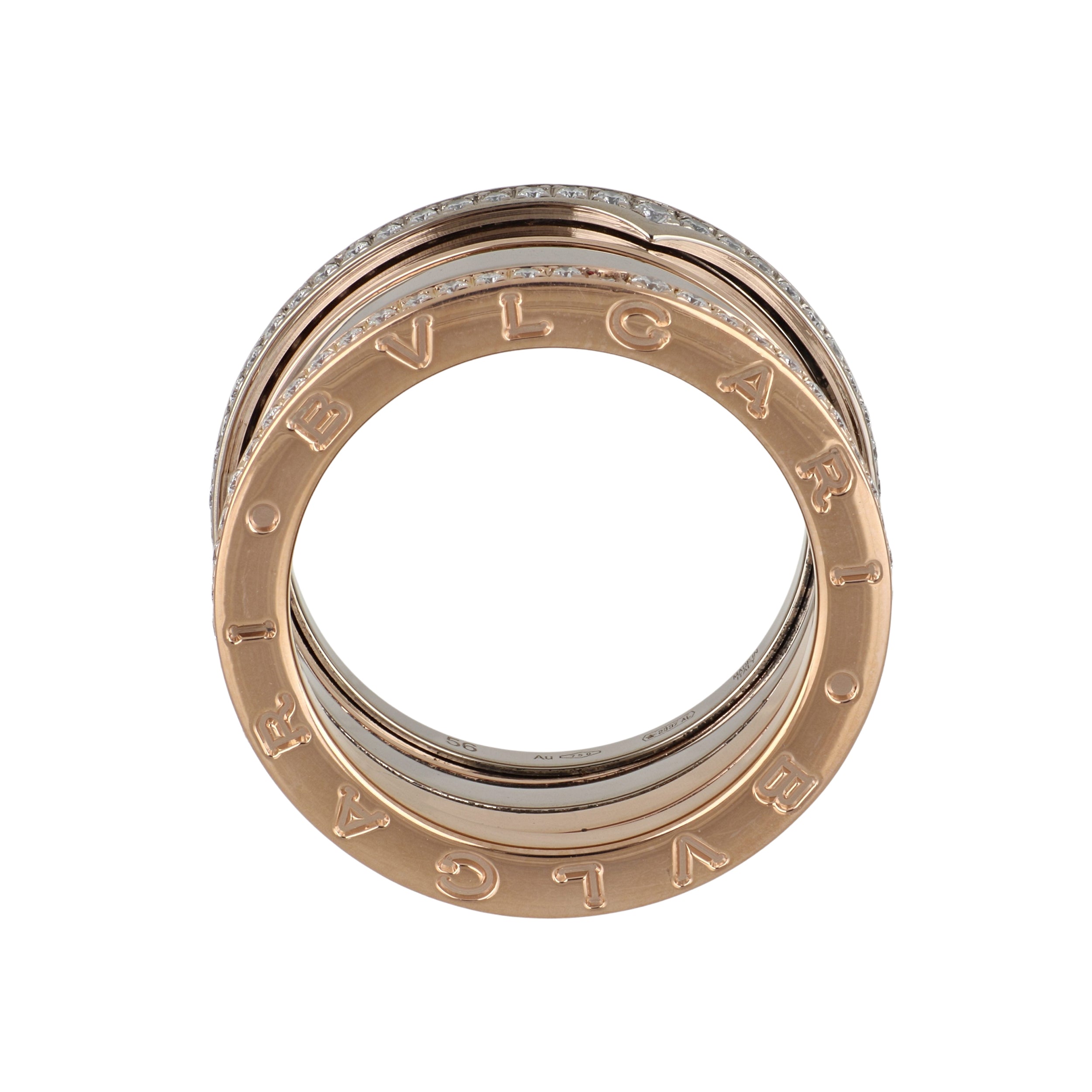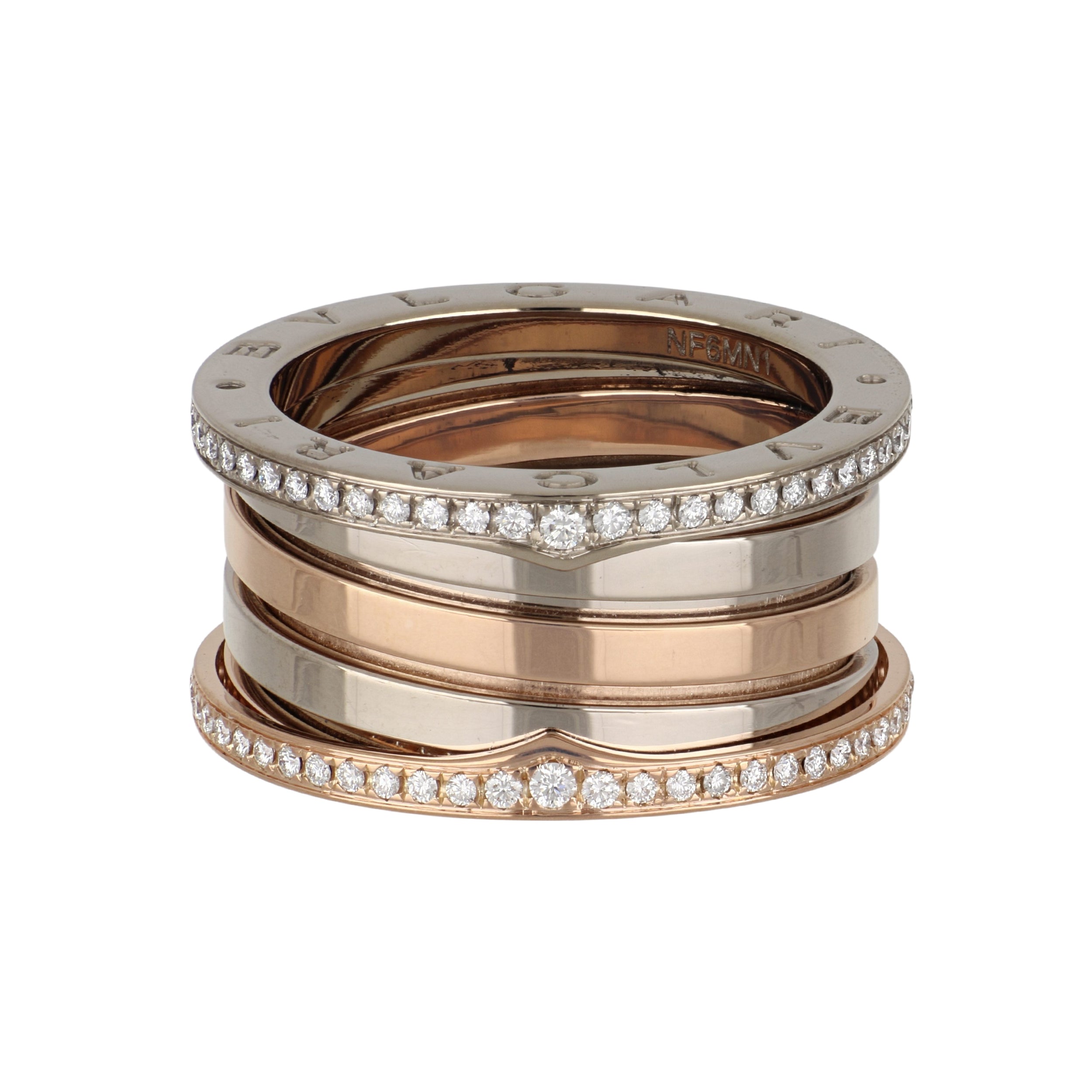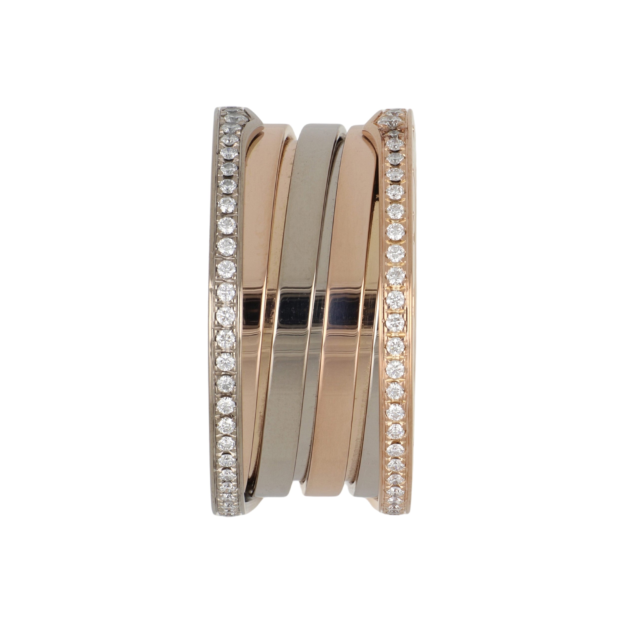 An estate Bulgari 18K tri-color gold B.zero1 band with round diamonds. Dated: 2021. Signed: Bulgari.