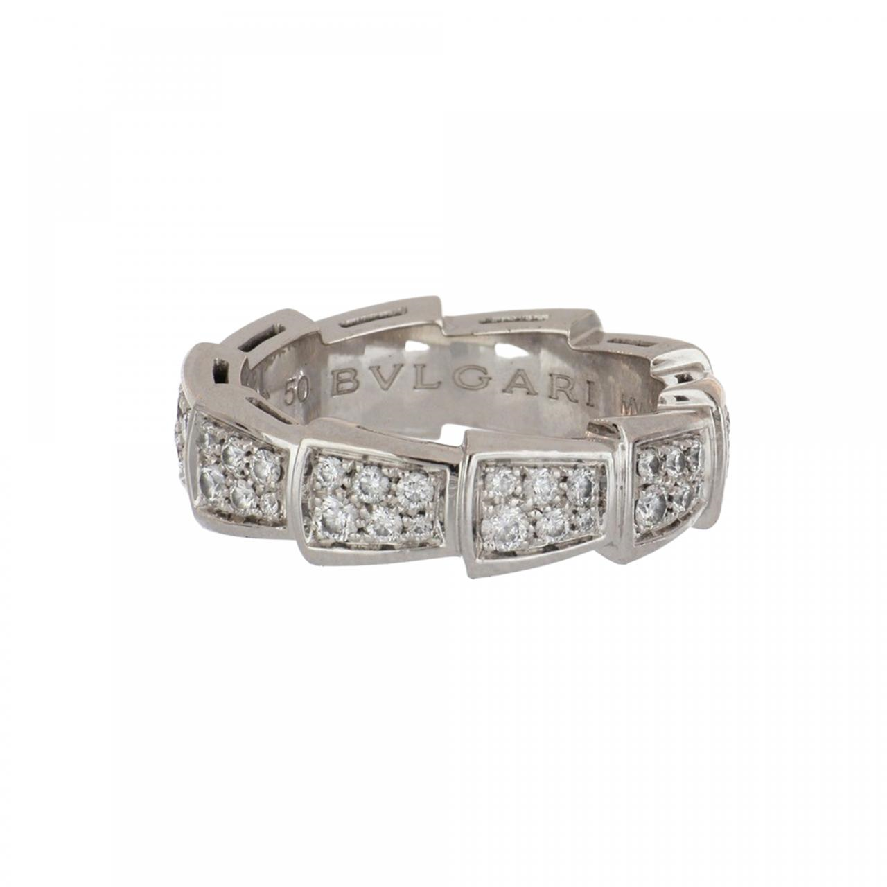 An estate Bulgari Serpenti Viper wedding band with pave diamonds in 18K white gold. Accompanied with the original box and receipt. Circa 2020.