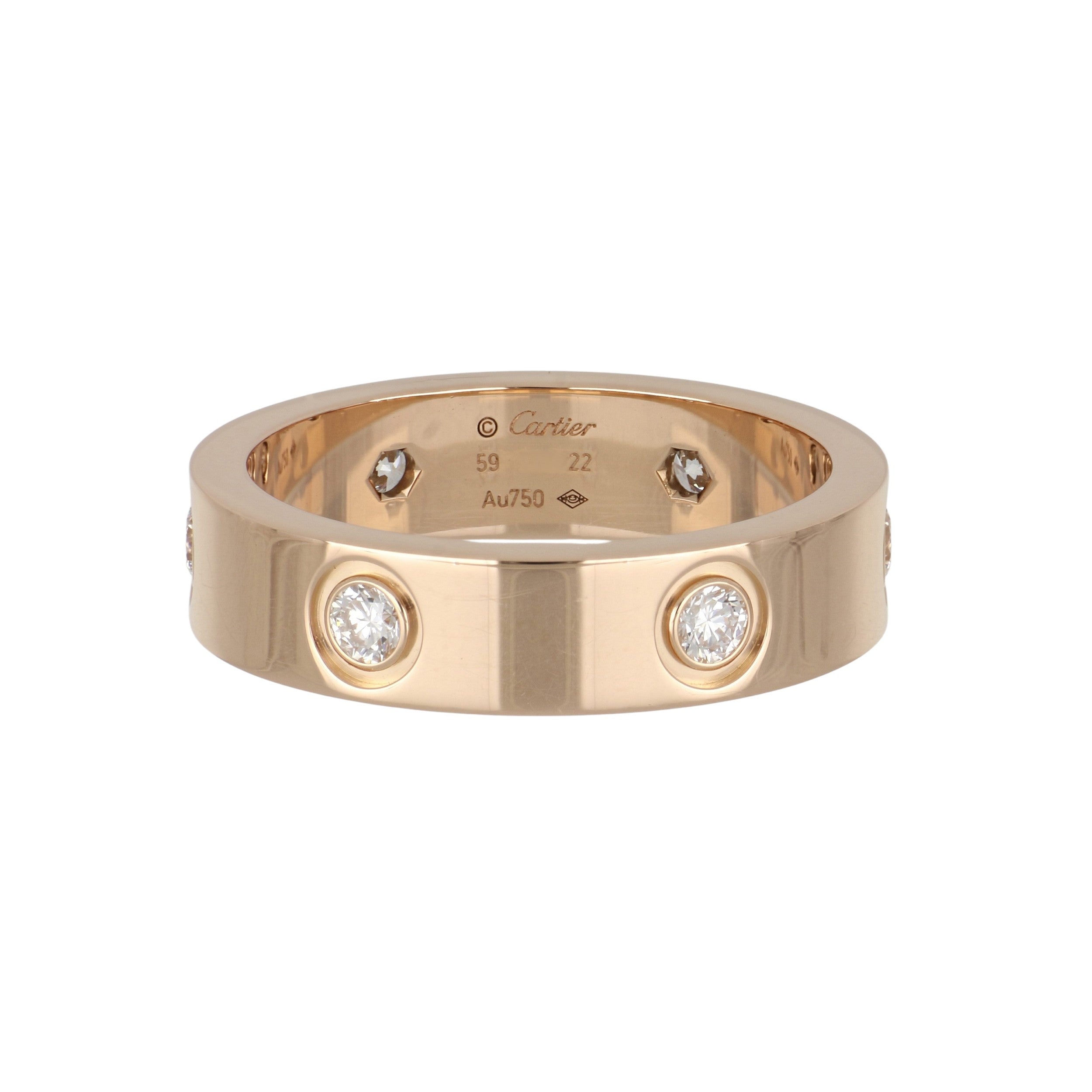 An estate 18K rose gold classic six round brilliant-cut diamond Love Ring. Accompanied with the certificate of authentication. Dated: 2020. Signed: Cartier.