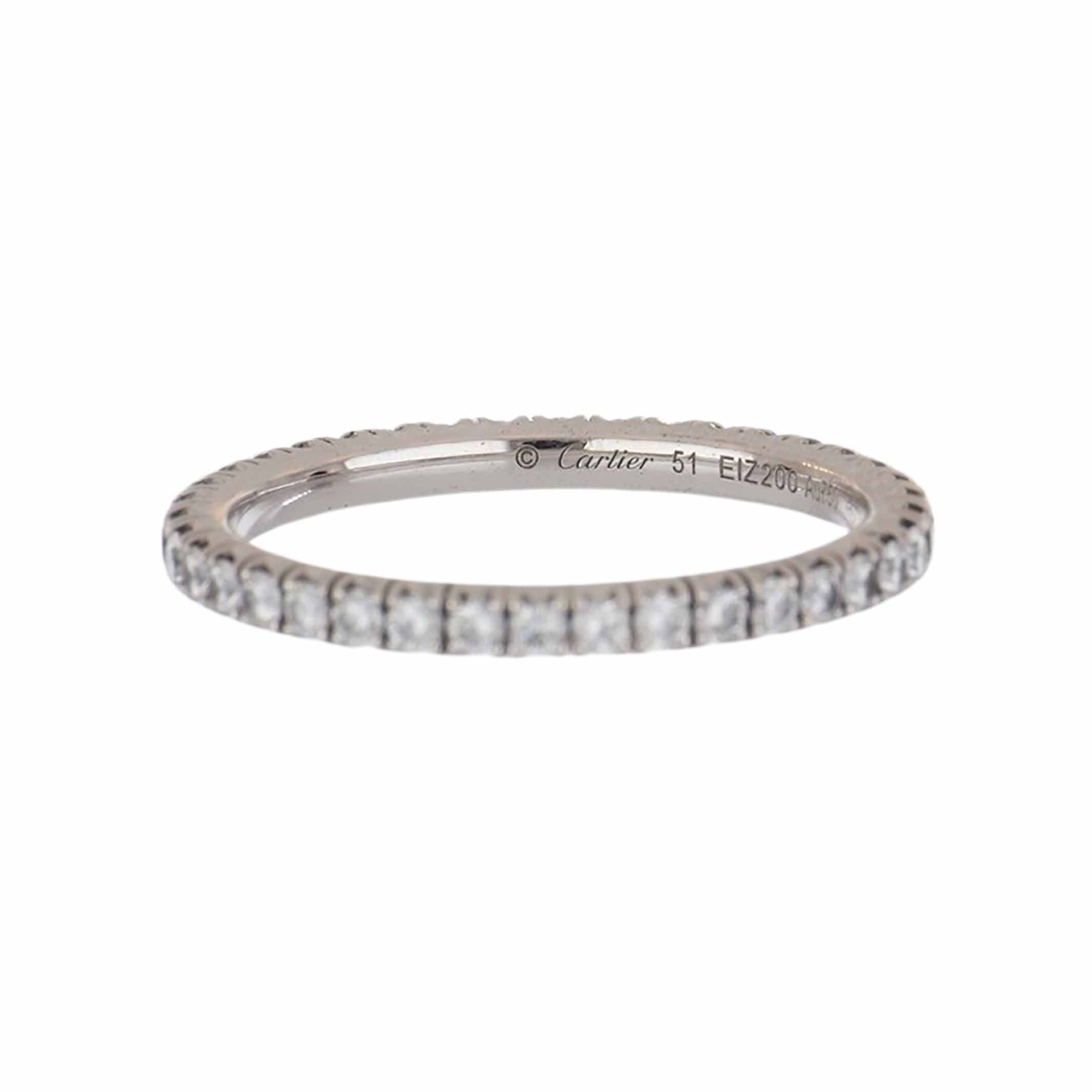 An estate Cartier 18K white gold 'Etincelle de Cartier' diamond eternity wedding band. Circa 2020.