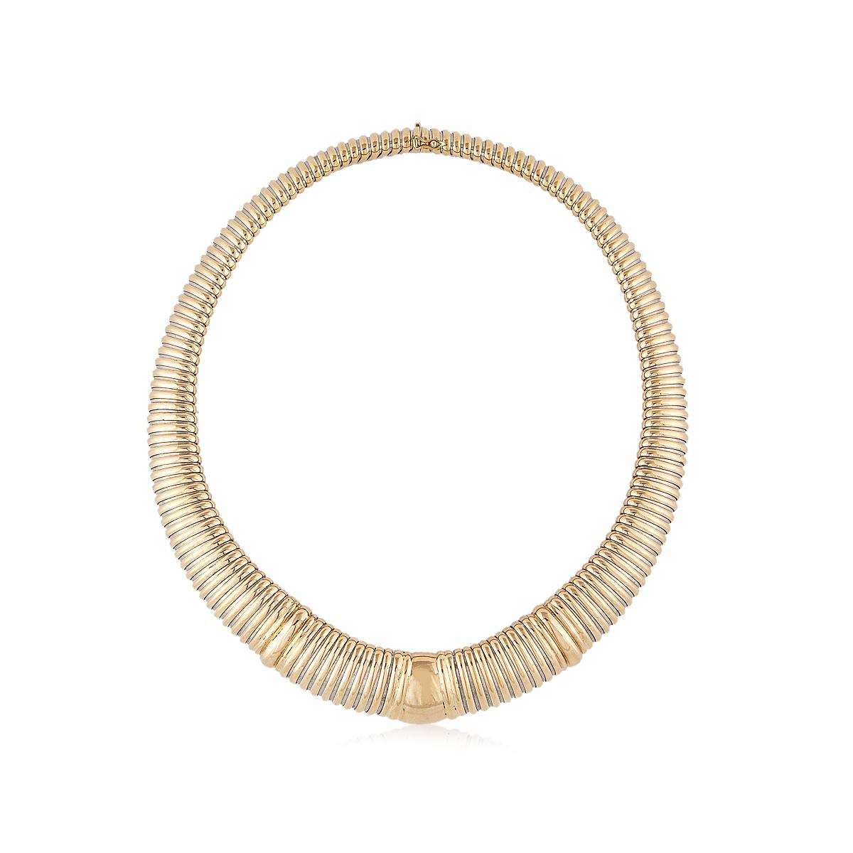 A vintage Cartier 18K yellow gold and steel tubogas necklace. Circa 1980.