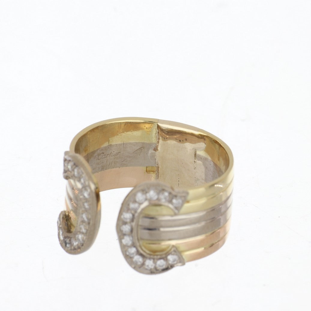 A vintage Cartier 'C de Cartier' 18K white, yellow and rose gold band with diamonds. Circa 1990.