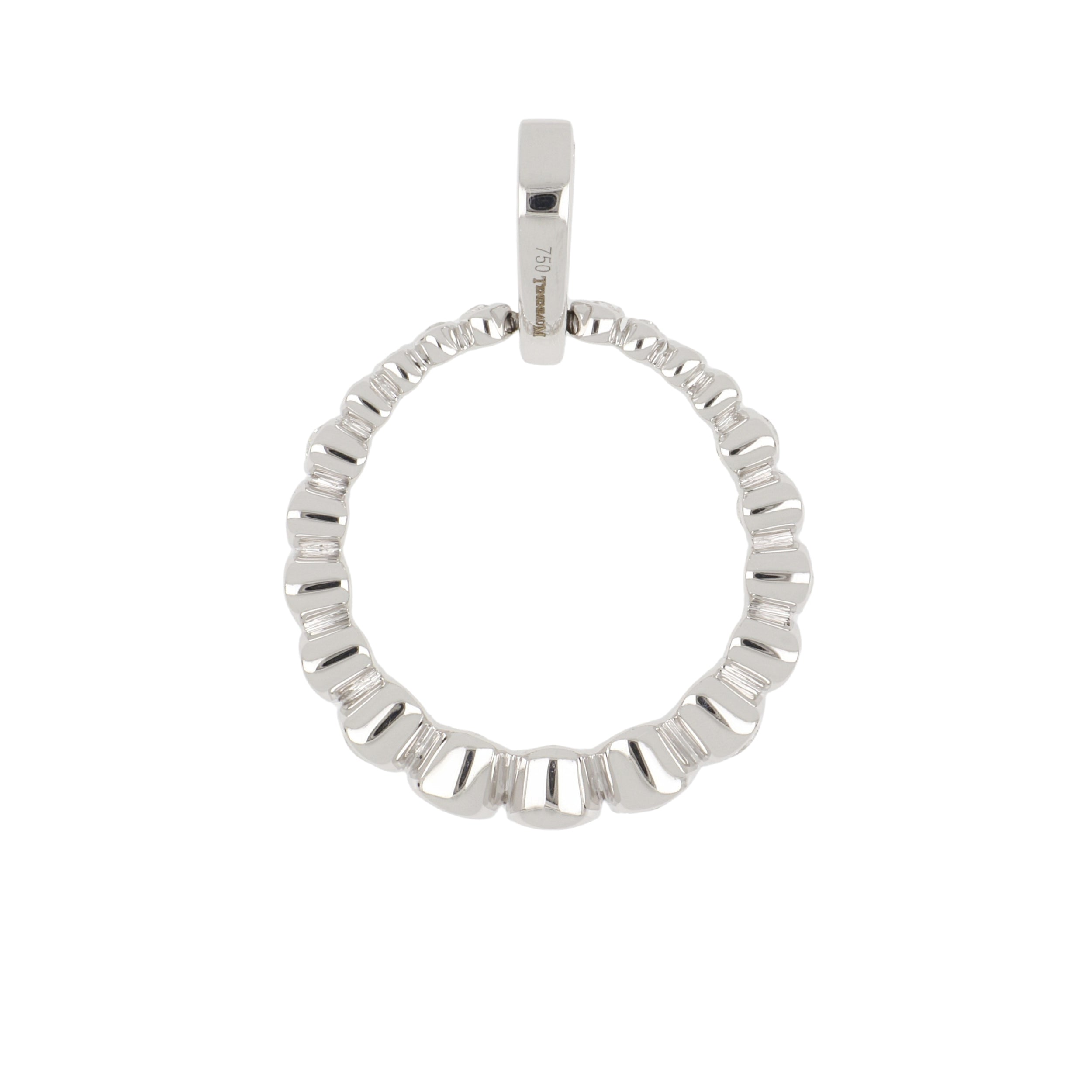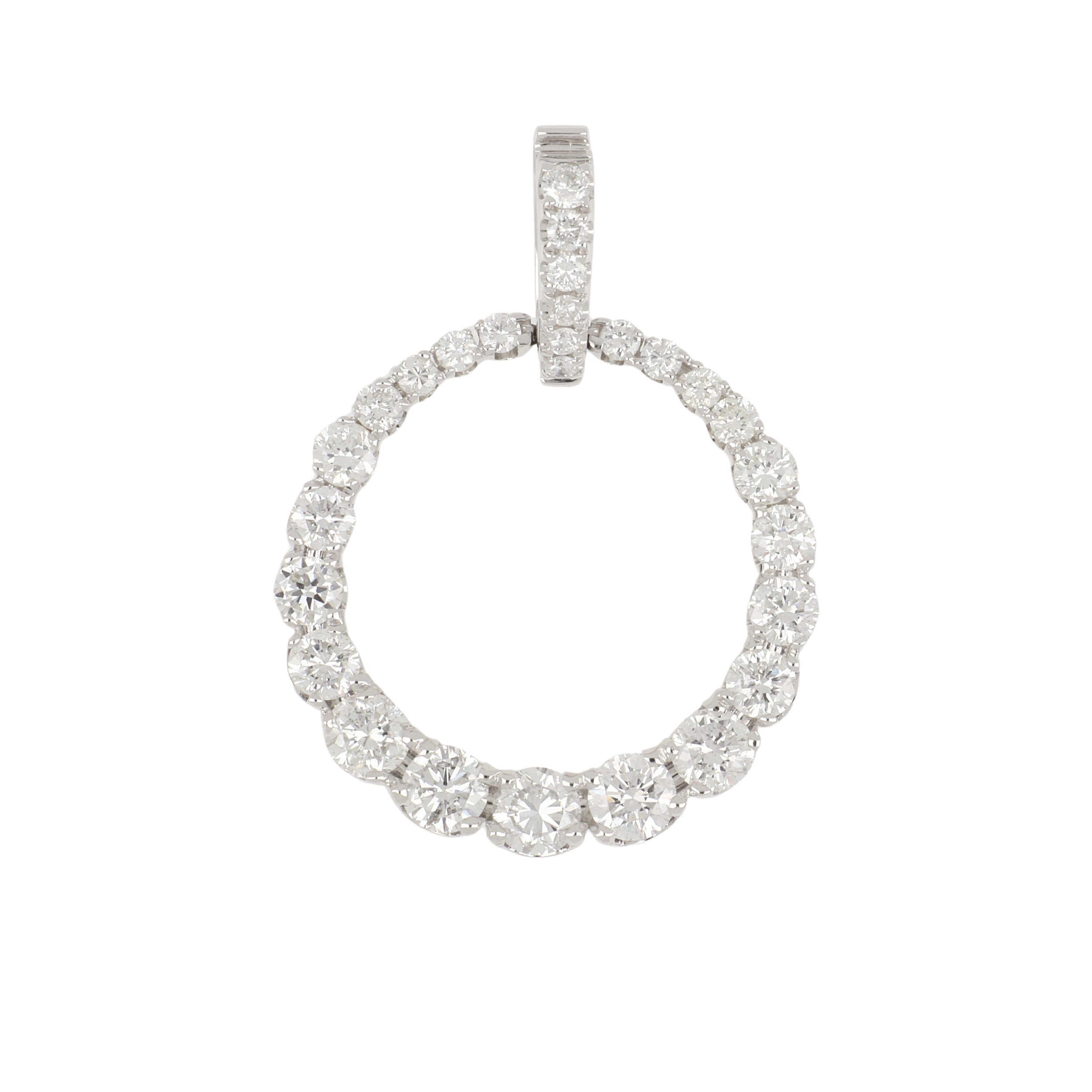 A round diamond circle pendant with a diamond bail, set in 18K white gold.