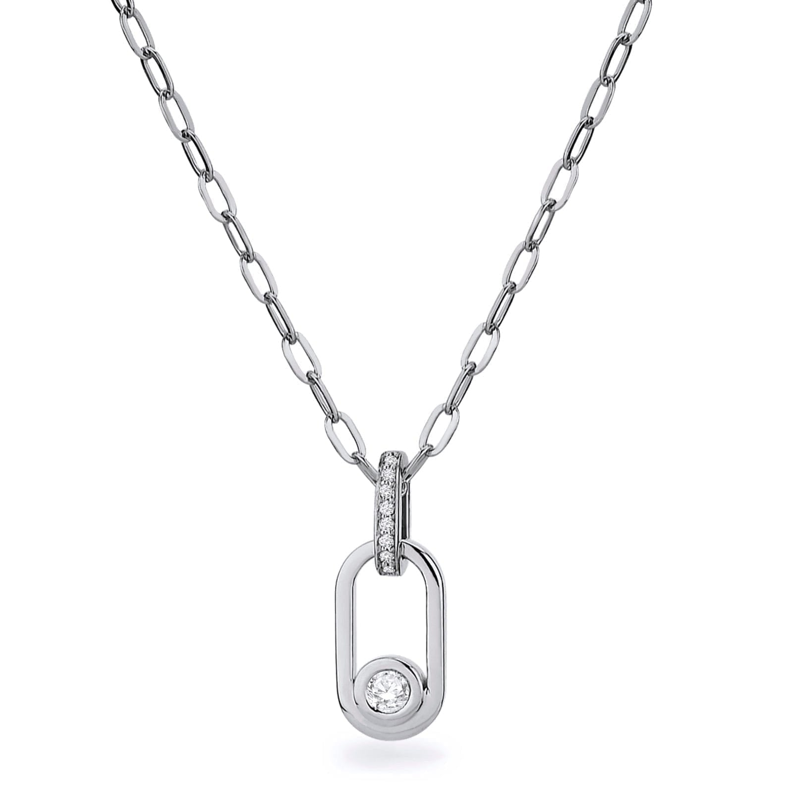A Michael M small pave diamond Link necklace, in 14K white gold.