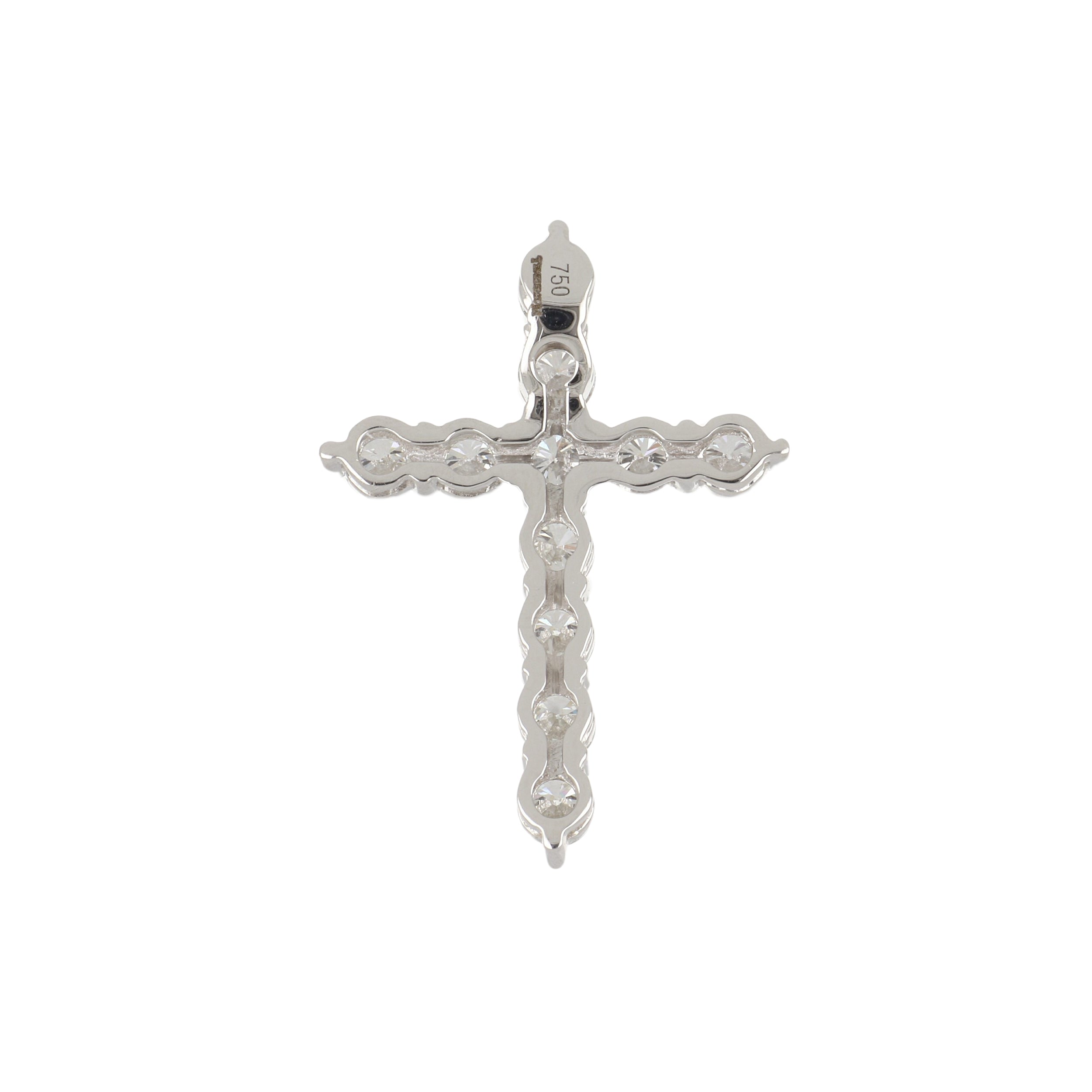 A round-cut diamond cross slide pendant, set in 18K white gold.