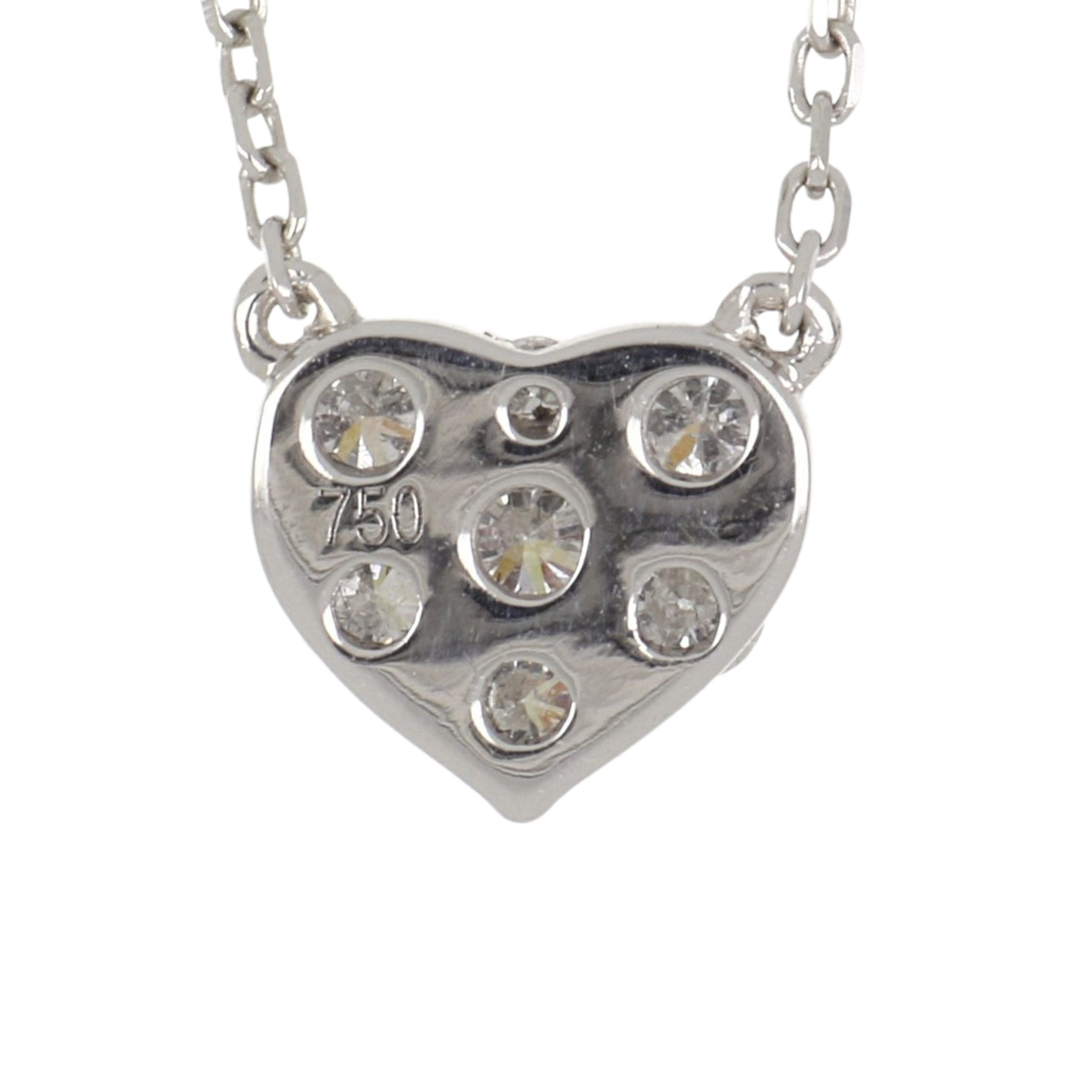 A round diamond cluster heart shaped pendant necklace, set in 18K white gold.