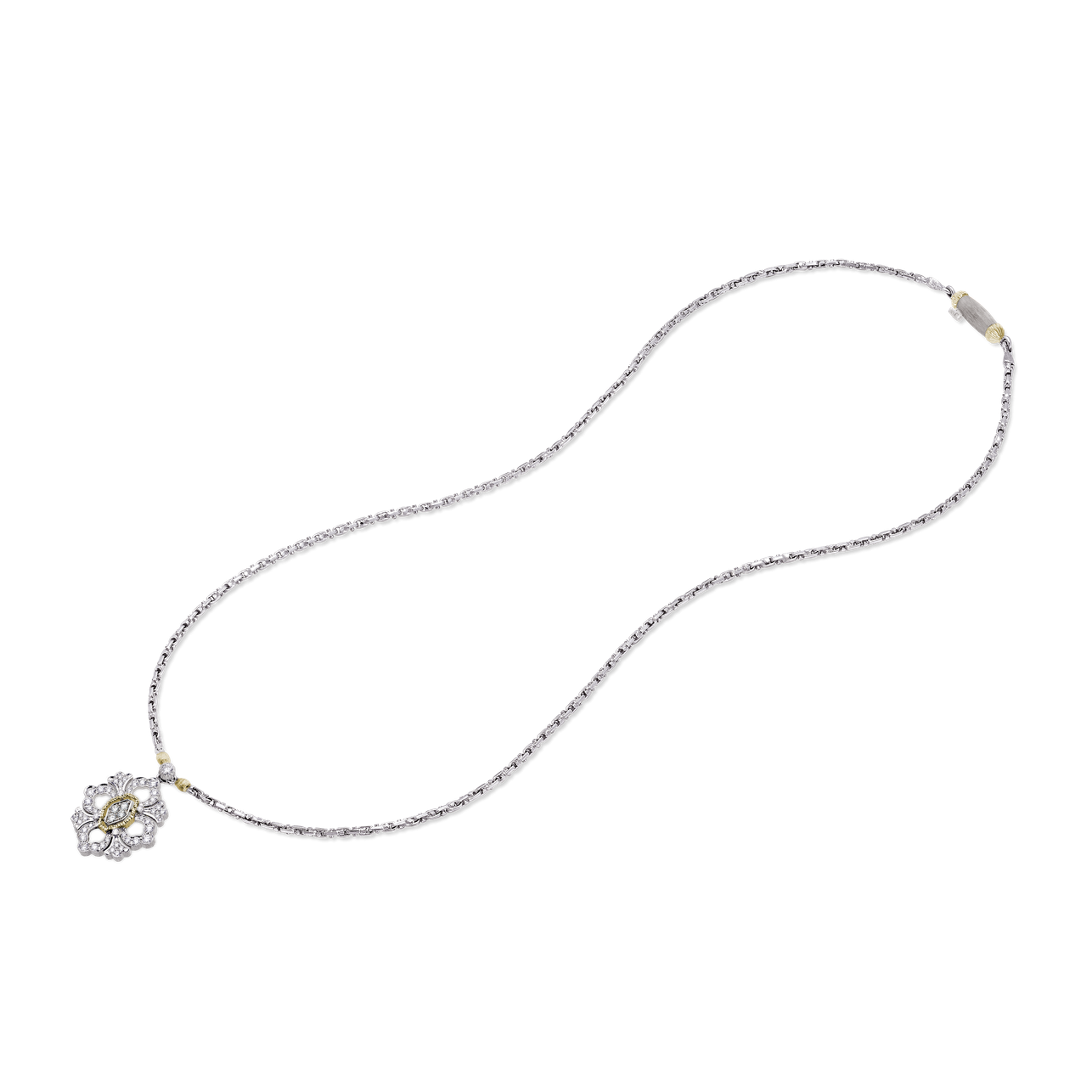 A Buccellati Opera full pave diamond pendant necklace, in 18K white and yellow gold.