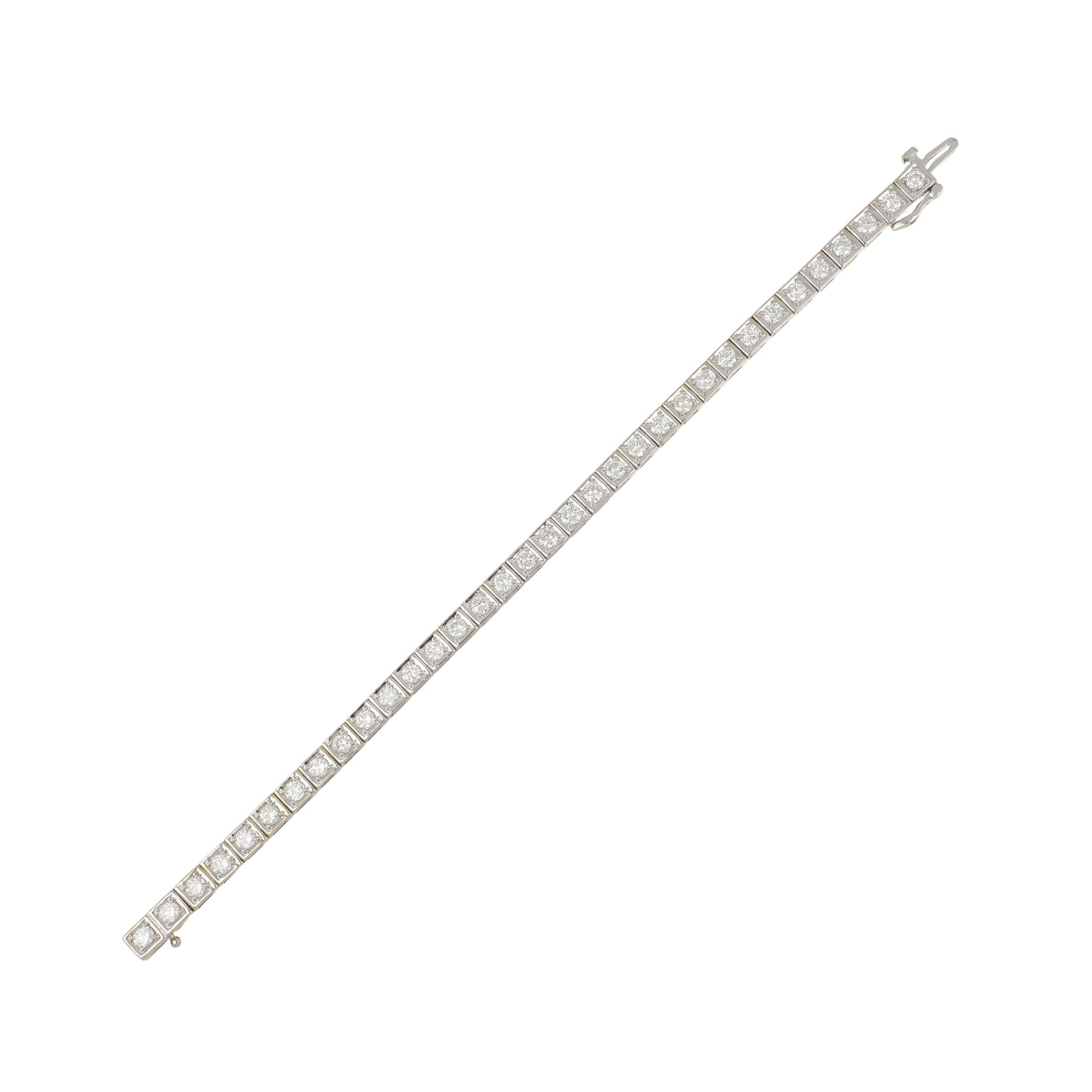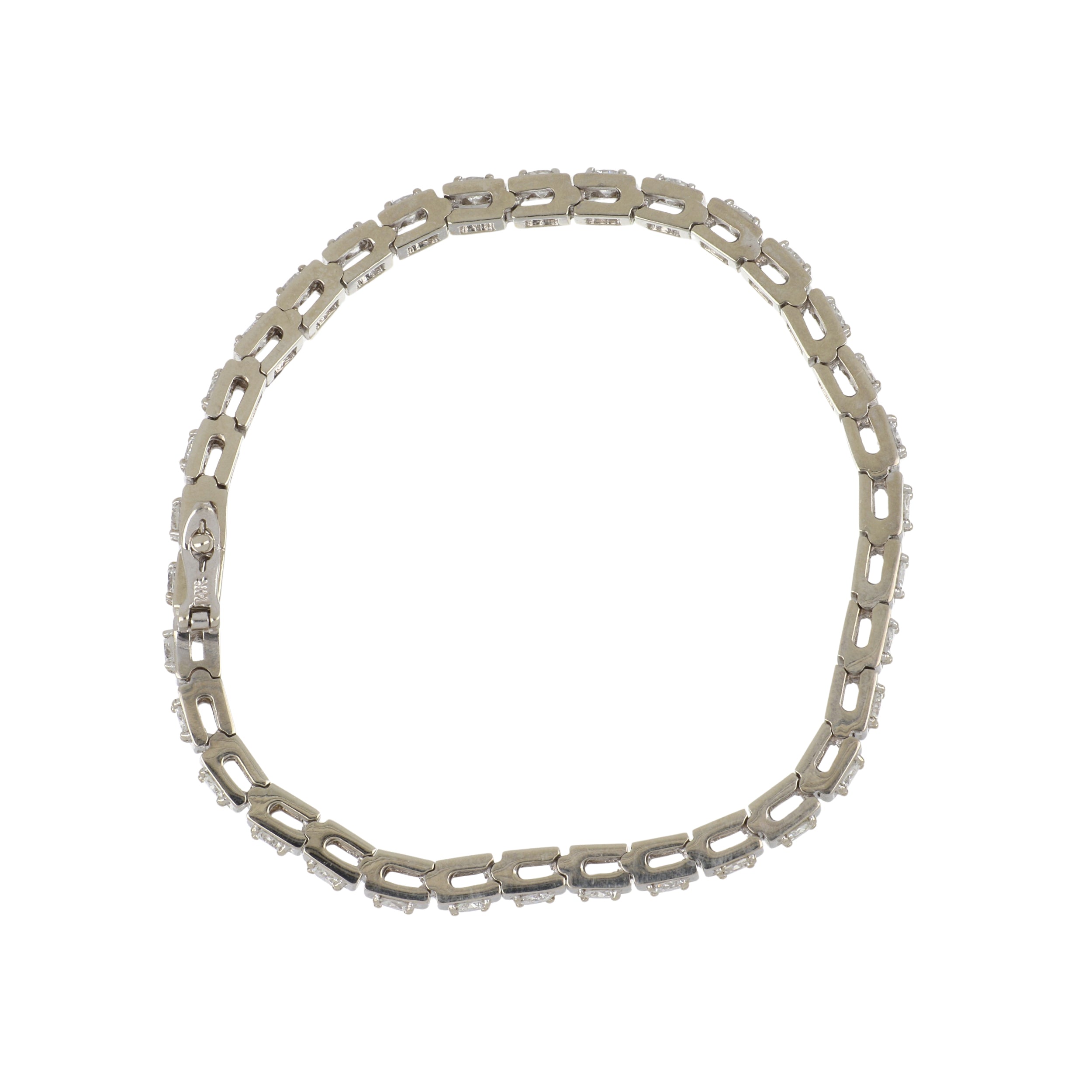An estate box shape link bracelet with four prong set round brilliant-cut diamonds, set in 14K white gold. Circa 2000