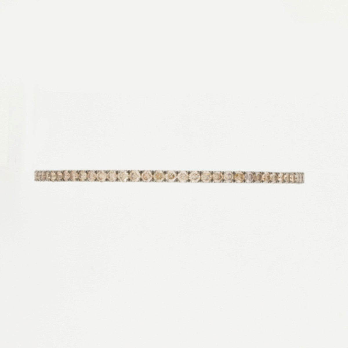 An estate, prong set eternity fancy brown round diamond bangle in 18K yellow gold.
