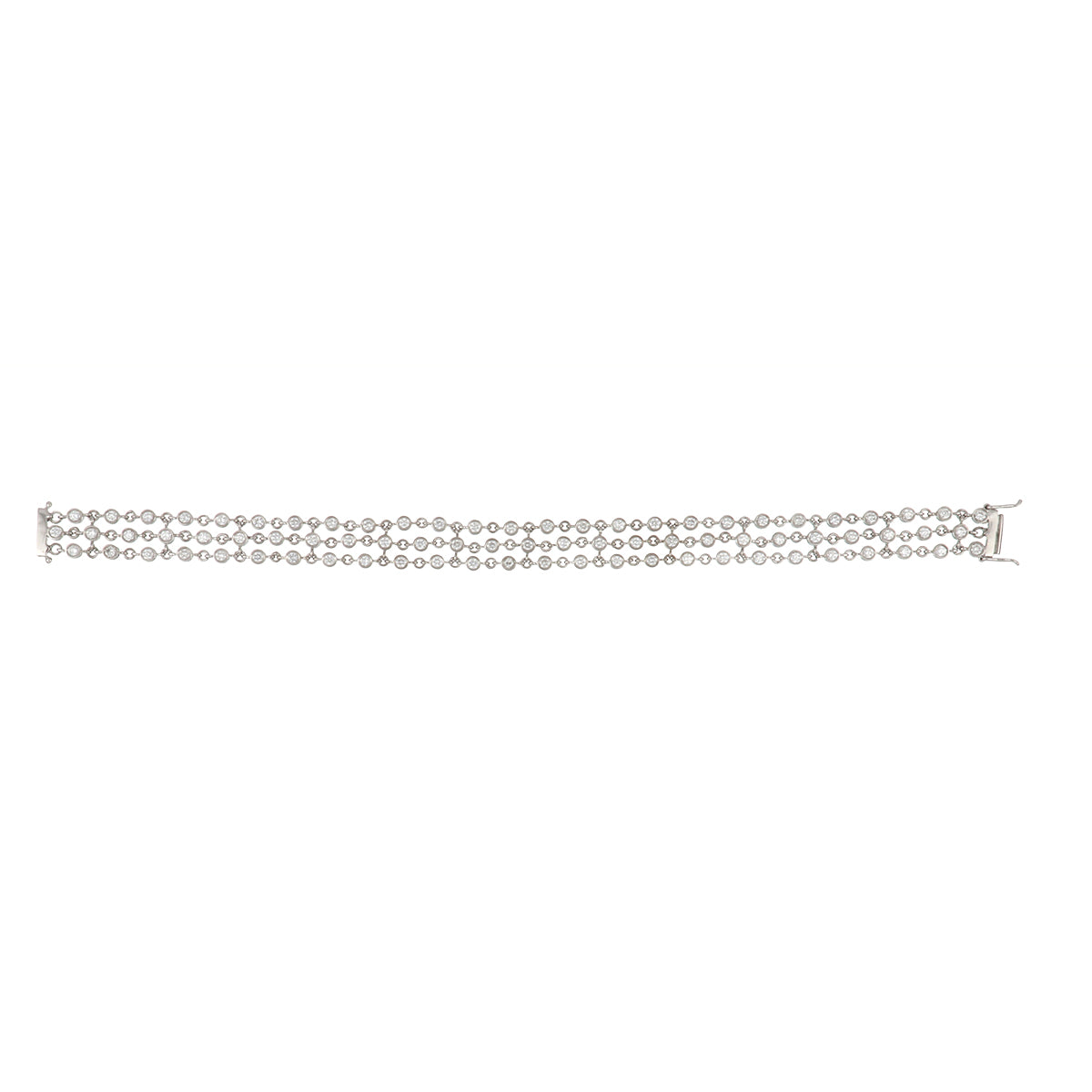 An estate 18K white gold three row bezel set chain bracelet with diamonds.