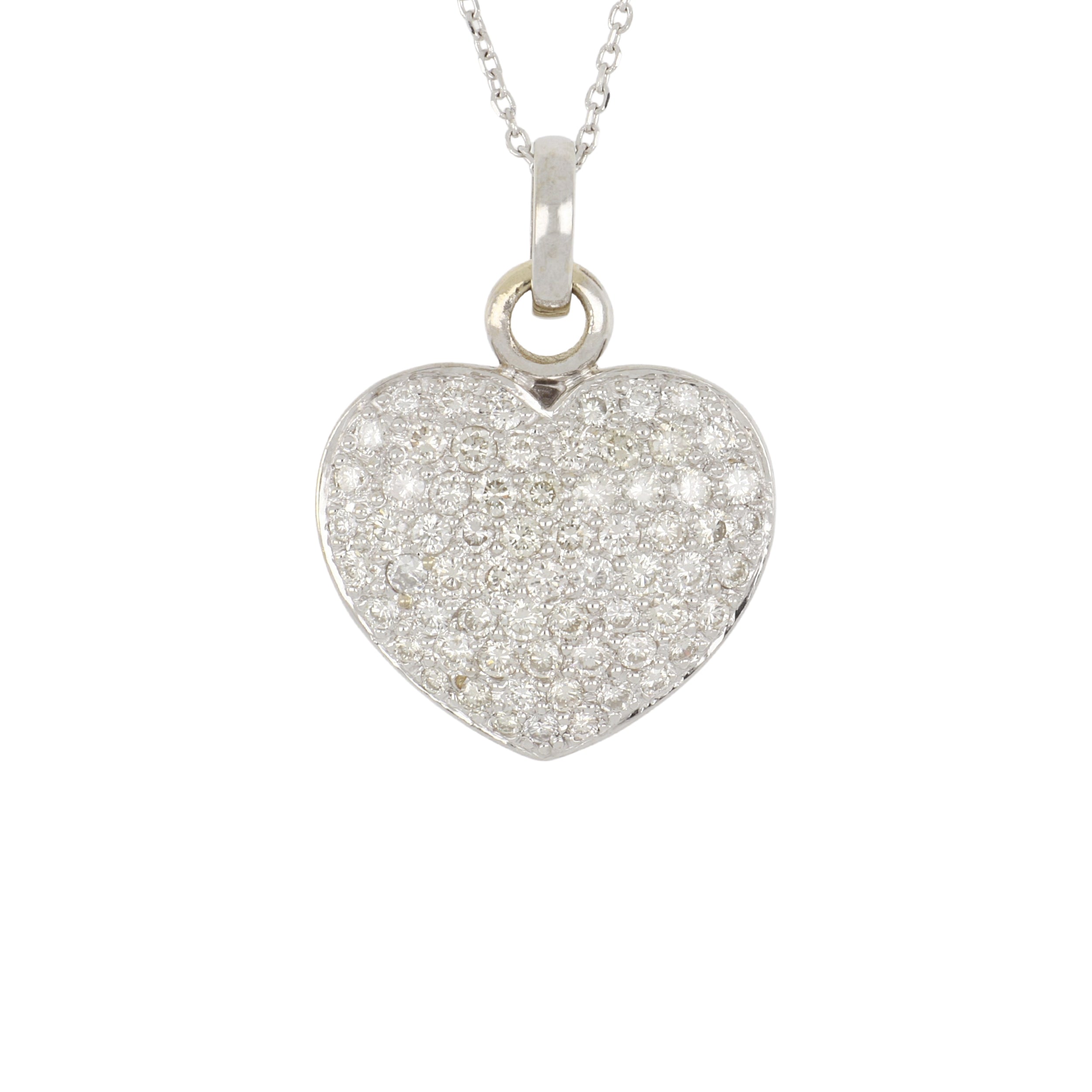 An estate pave round brilliant-cut diamond heart pendant necklace, set in 18K white gold. Circa 2010.